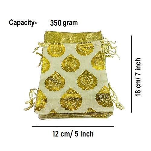 Moira 25/50/ 100 pcs 5 inch X 7 inch Unisex Gift Potli Bags Drawstring Closure Silk Brocade Gold Motifs for Gifting/Jewellery Storage/Chocolates/Dryfruits