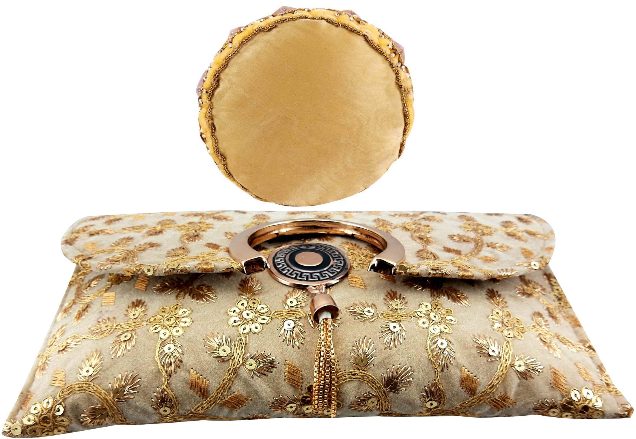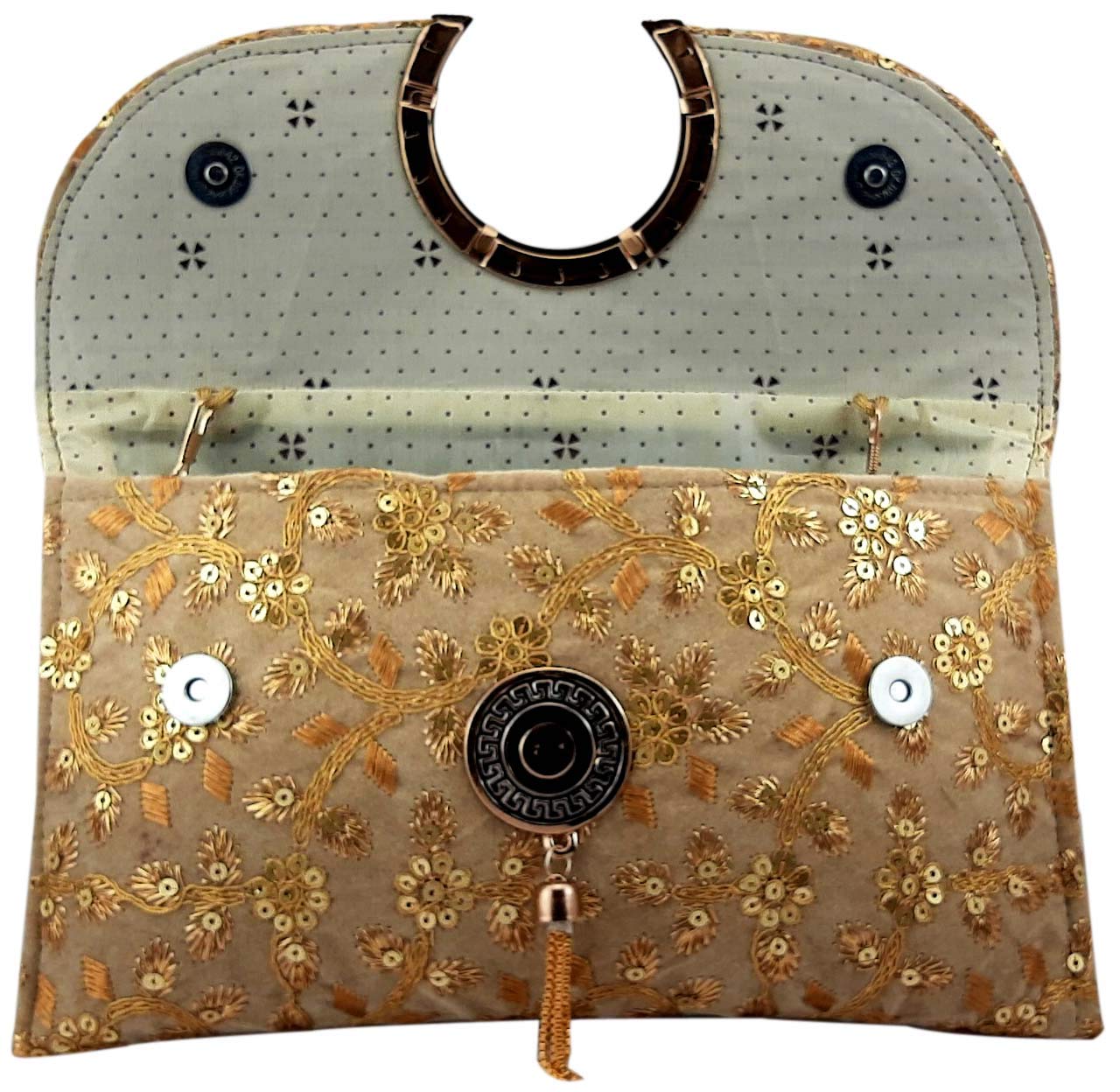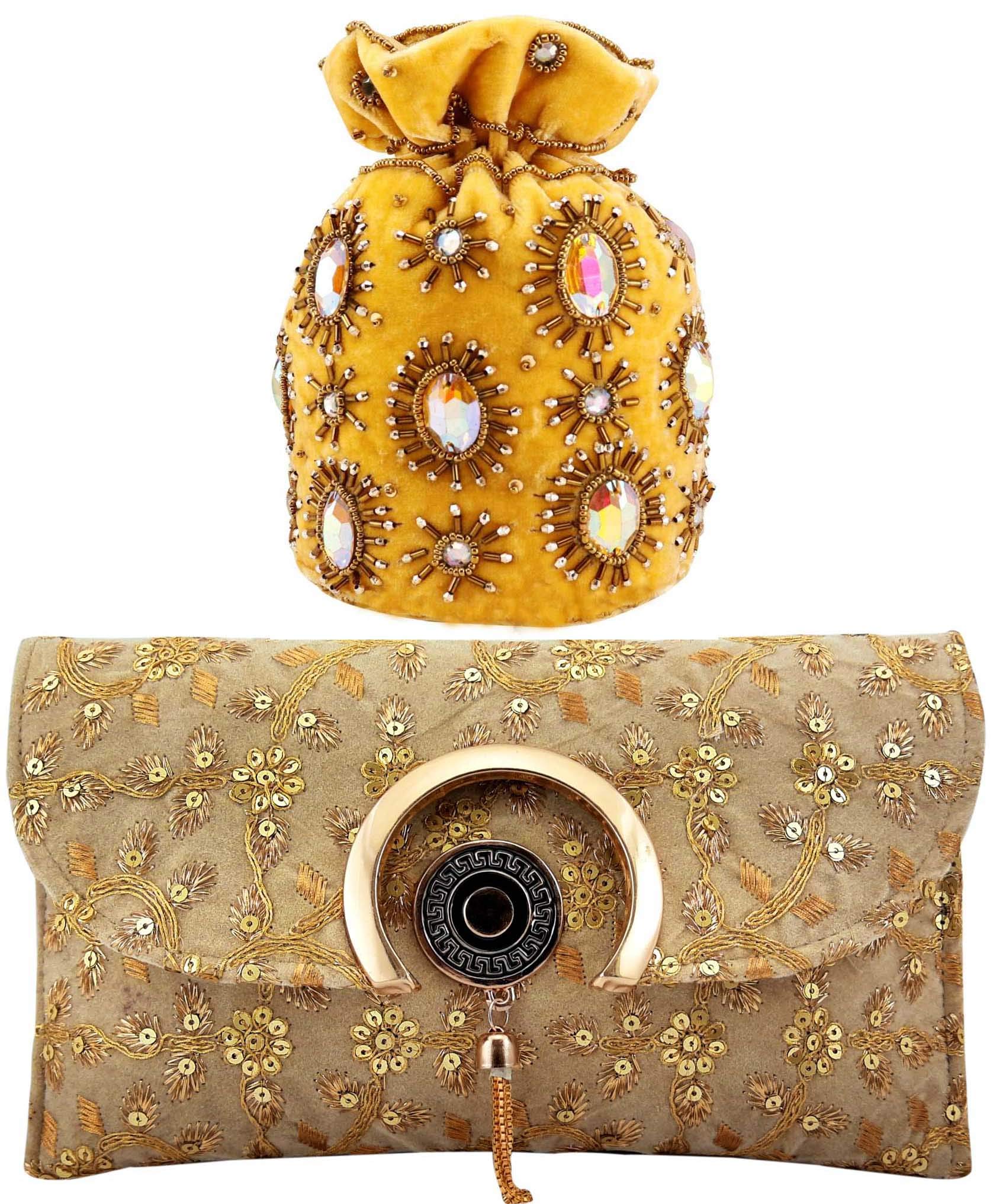 Potli Bag is a Ethnic Stylish Clutch kind of Indian Handbag Potli bag looks very nice with any traditional dresses also goes well with any Casual Indian Dresses. Spacious Compartment that can easily carry today's big smartphonesmobiles and other valuables things. Potli bag are designed for any evening party or casual occasions at any time of the day. Marriage ceremonies to all kind of wedding parties. It can be one of the best gift for any woman. They will just Love it. Outer Material: Velvet ; Inner Material: Satin Craft Trade Traditional Bags Has Decorated Embroidery Worked. Product Dimension : Length (29 cm) x Height (17 cm) X Width (2 cm) Clutch Has More Space To Keep Your Daily Stuffs money and cards will be comfortably In It. This Clutch Bag go well with both Indian and Western outfits and are superb for Wedding and Festive parties wherein it will best complement your Designer Saree Lenhga or any other dress.