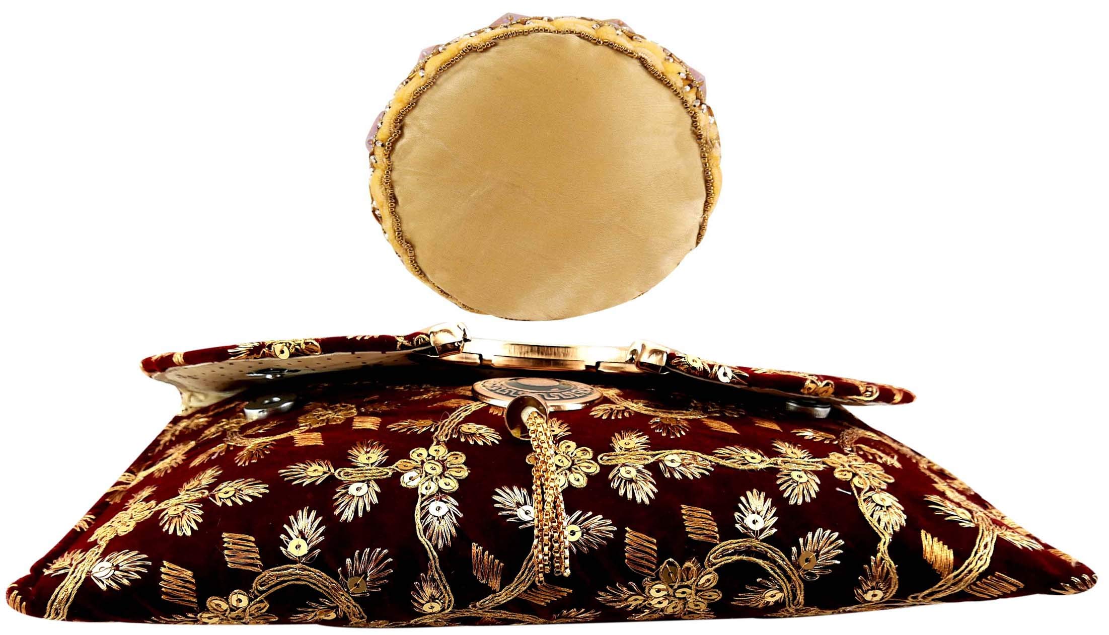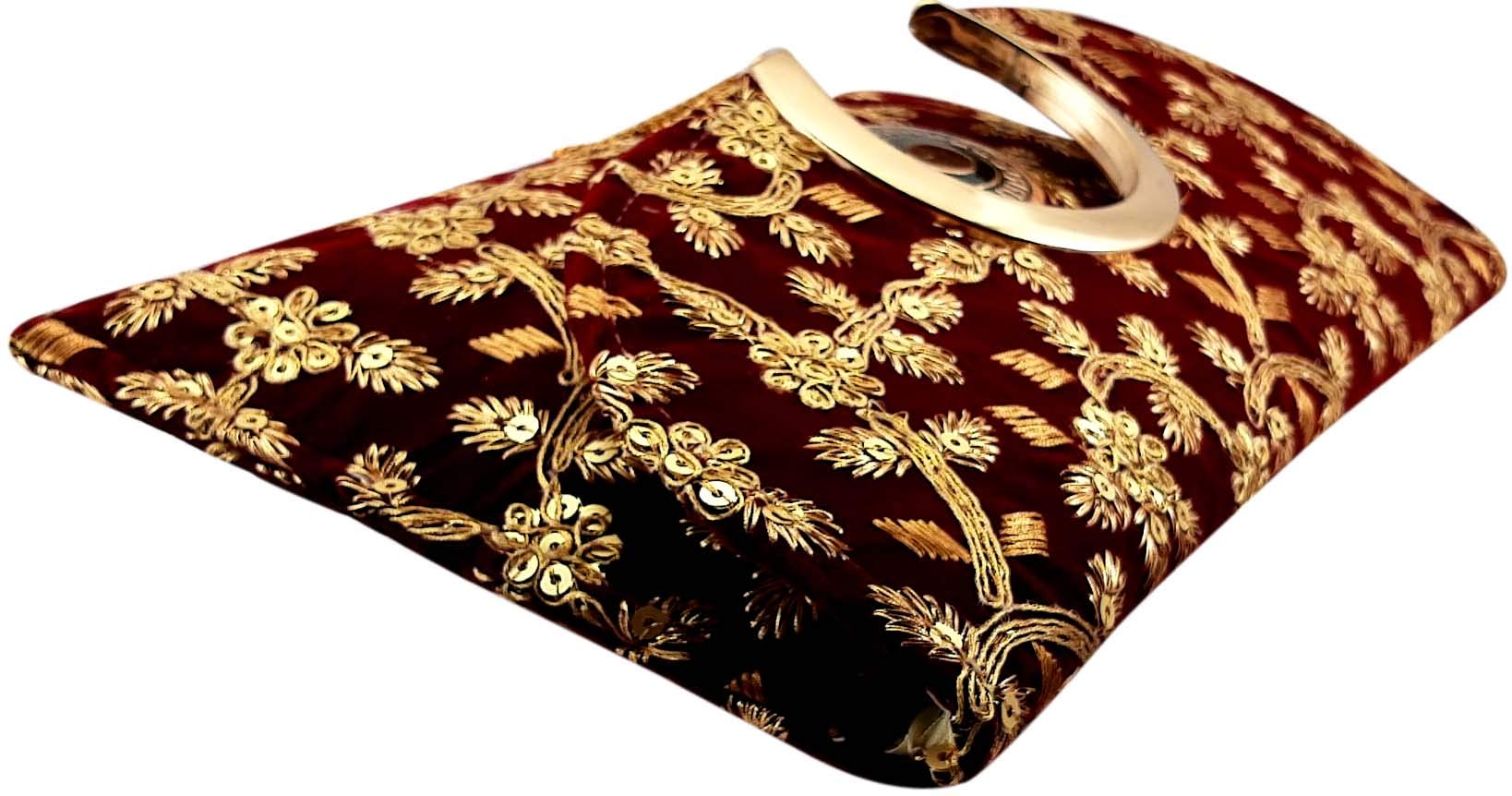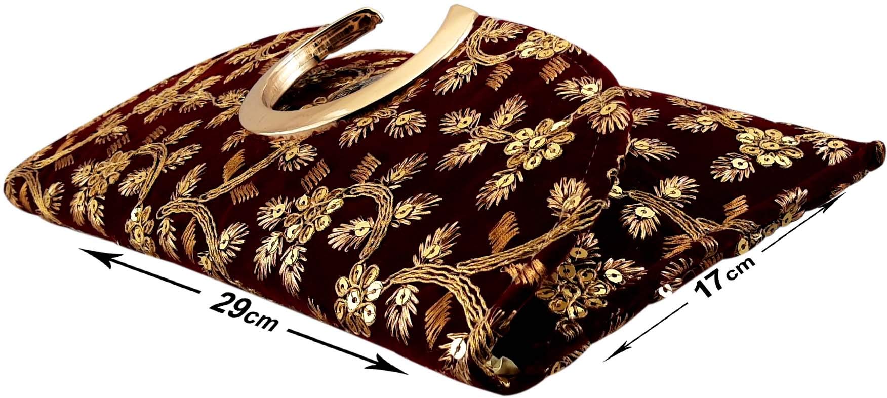 Potli Bag is a Ethnic Stylish Clutch kind of Indian Handbag Potli bag looks very nice with any traditional dresses also goes well with any Casual Indian Dresses. Spacious Compartment that can easily carry today's big smartphonesmobiles and other valuables things. Potli bag are designed for any evening party or casual occasions at any time of the day. Marriage ceremonies to all kind of wedding parties. It can be one of the best gift for any woman. They will just Love it. Outer Material: Velvet ; Inner Material: Satin Craft Trade Traditional Bags Has Decorated Embroidery Worked. Product Dimension : Length (29 cm) x Height (17 cm) X Width (2 cm) Clutch Has More Space To Keep Your Daily Stuffs money and cards will be comfortably In It. This Clutch Bag go well with both Indian and Western outfits and are superb for Wedding and Festive parties wherein it will best complement your Designer Saree Lenhga or any other dress.