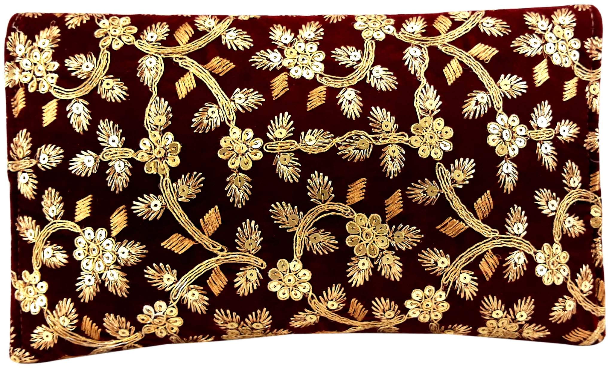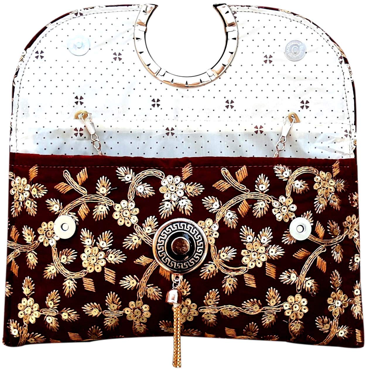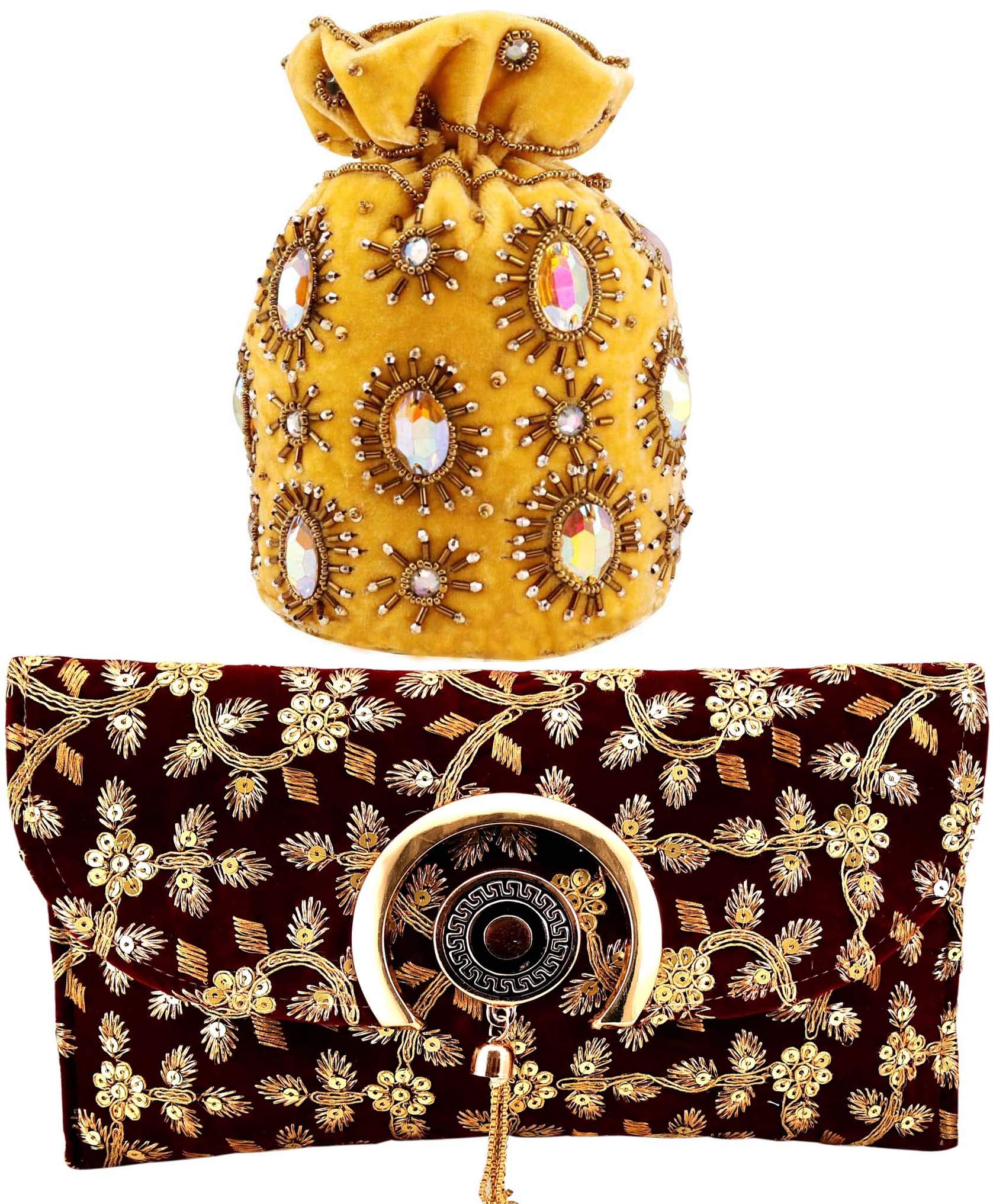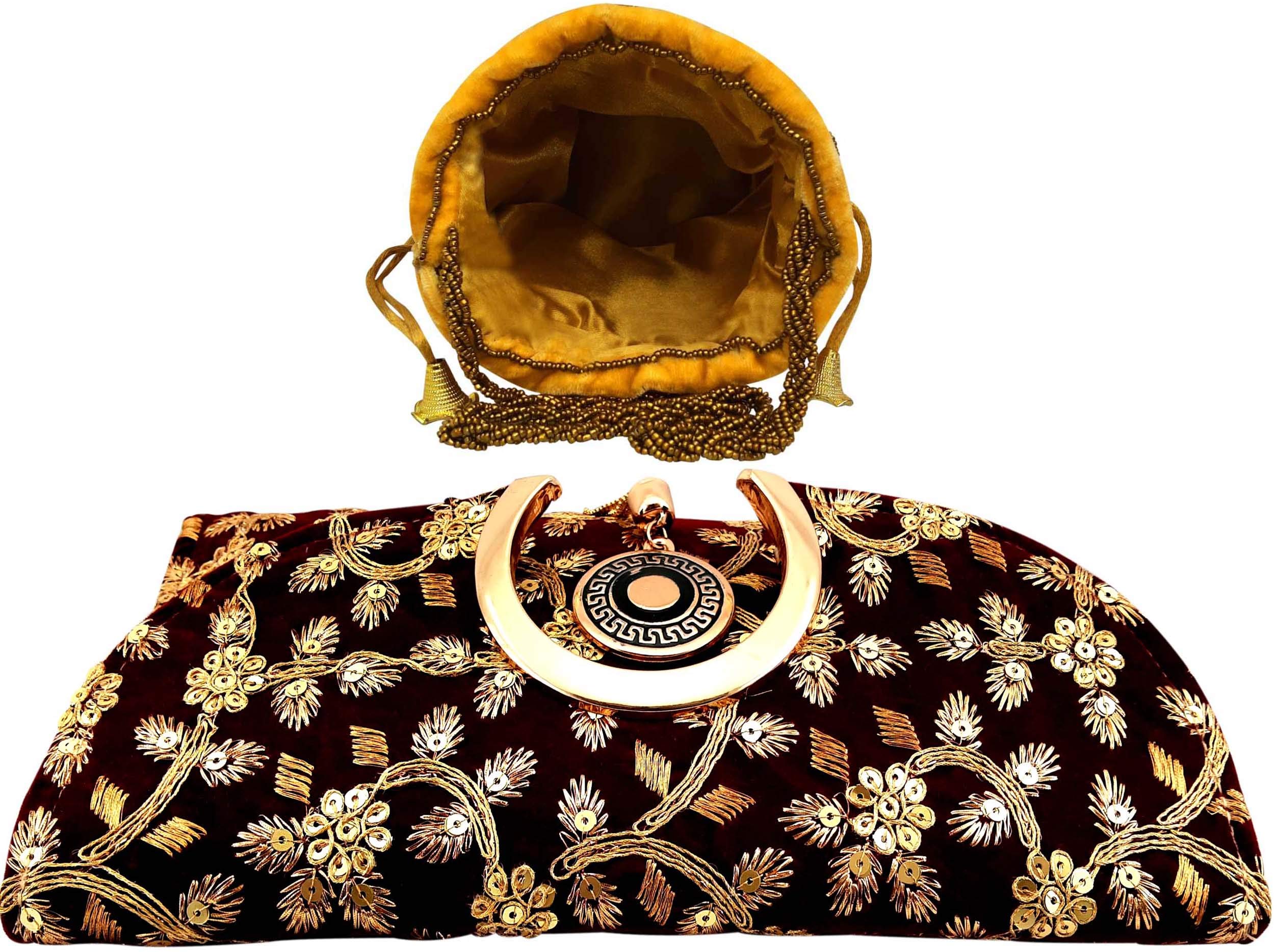 Potli Bag is a Ethnic Stylish Clutch kind of Indian Handbag Potli bag looks very nice with any traditional dresses also goes well with any Casual Indian Dresses. Spacious Compartment that can easily carry today's big smartphonesmobiles and other valuables things. Potli bag are designed for any evening party or casual occasions at any time of the day. Marriage ceremonies to all kind of wedding parties. It can be one of the best gift for any woman. They will just Love it. Outer Material: Velvet ; Inner Material: Satin Craft Trade Traditional Bags Has Decorated Embroidery Worked. Product Dimension : Length (29 cm) x Height (17 cm) X Width (2 cm) Clutch Has More Space To Keep Your Daily Stuffs money and cards will be comfortably In It. This Clutch Bag go well with both Indian and Western outfits and are superb for Wedding and Festive parties wherein it will best complement your Designer Saree Lenhga or any other dress.