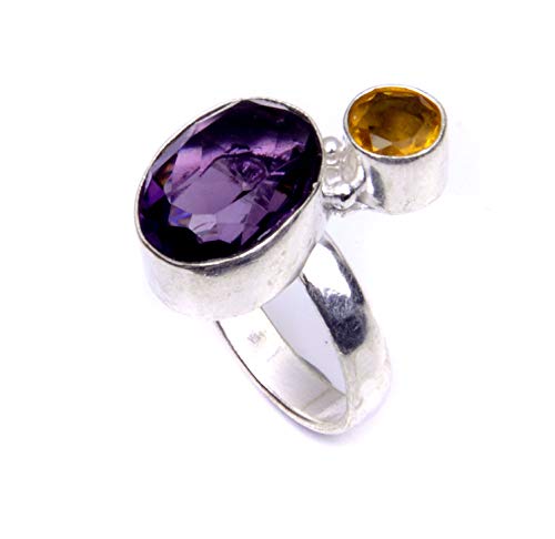 RidVik Handcrafted Cut Amethyst And Citrine Quartz Handmade Jewelry Ring 6'', Silver Plated