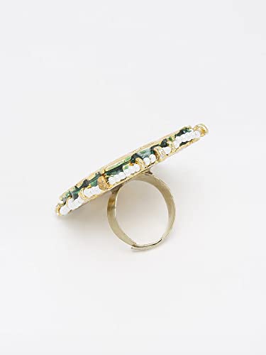 Ruby Raang Women's Mixed Metal Artificial Kundan Rings - Traditional Jewellery Set for Women (White)