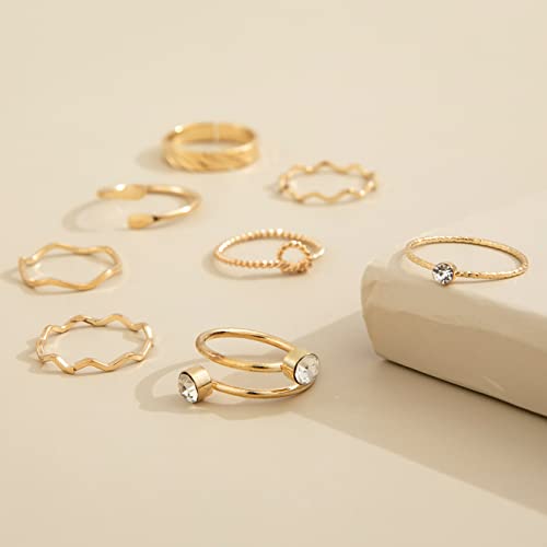 Shining Diva Fashion Latest Stylish Metal Boho Midi Finger Rings for Women and Girls - Set of 8 (rrsd14224r) Golden free size Metal No Gemstone