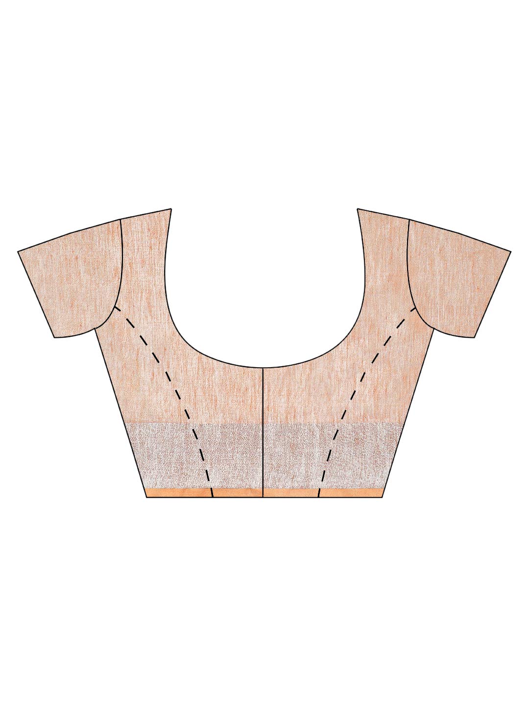 A delicate blend of glowing tissue and textured linen fabric. The sari has a fine zari inclusions making apparel stand out. A timeless hand crafted piece to give you a chic and classy style statement.