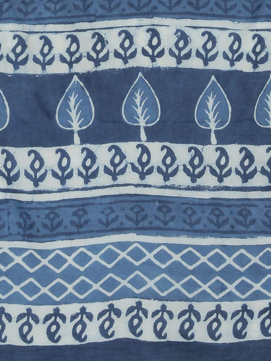 AKOLA DABU PRINT SAREE Women's Pure Cotton Handblock Printed Saree and Blouse (BHKPSA0096 Blue)