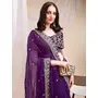 Purple Color Organza Fabric Ethnic Embroidered Partywear Saree