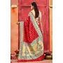 Red Color Velvet Tussar Silk Fabric Partywear Saree With Paithani Pallu And Traditional Ghatchola Print