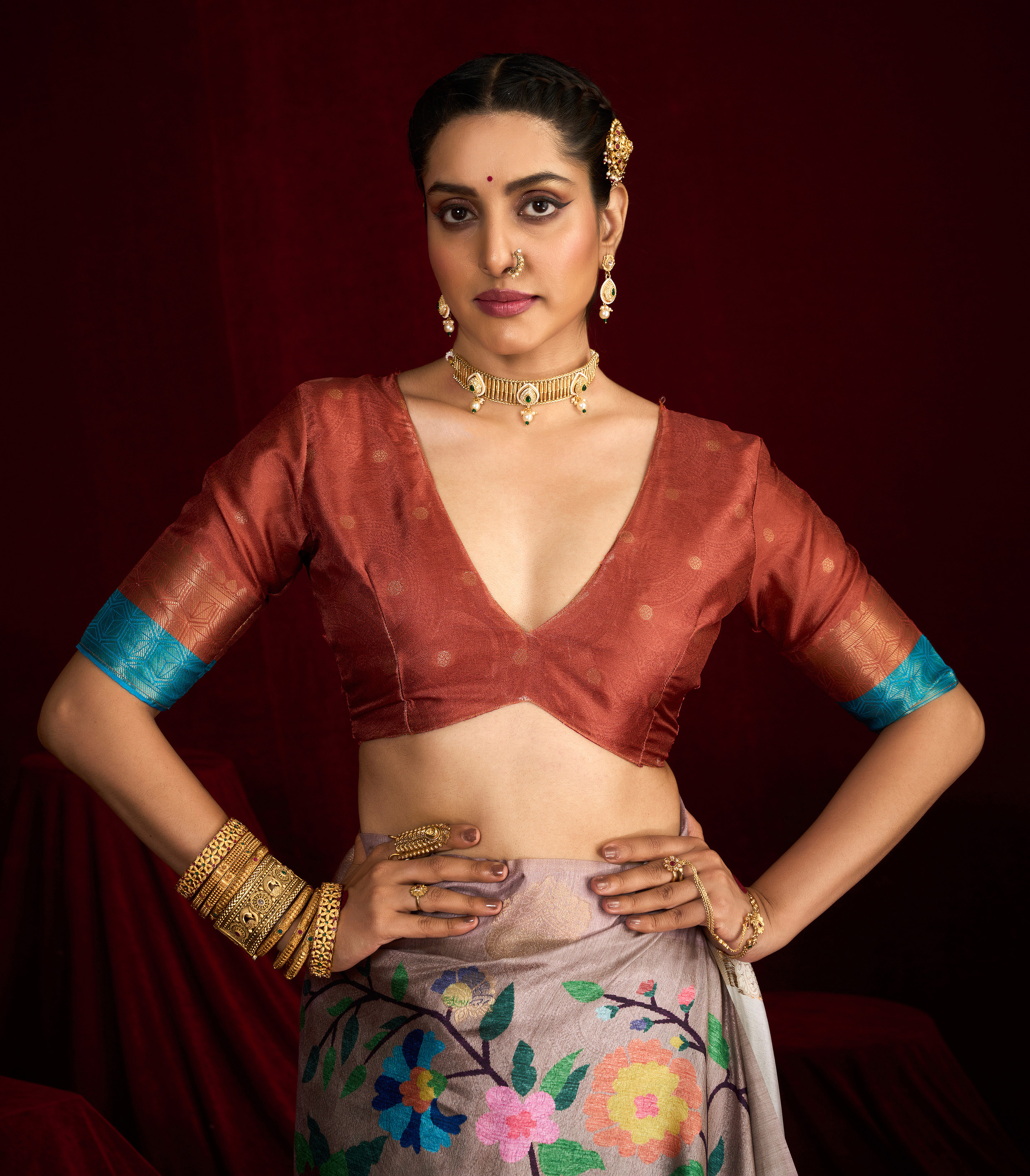 Rust Color Soft Silk Fabric Graceful Partywear Saree
