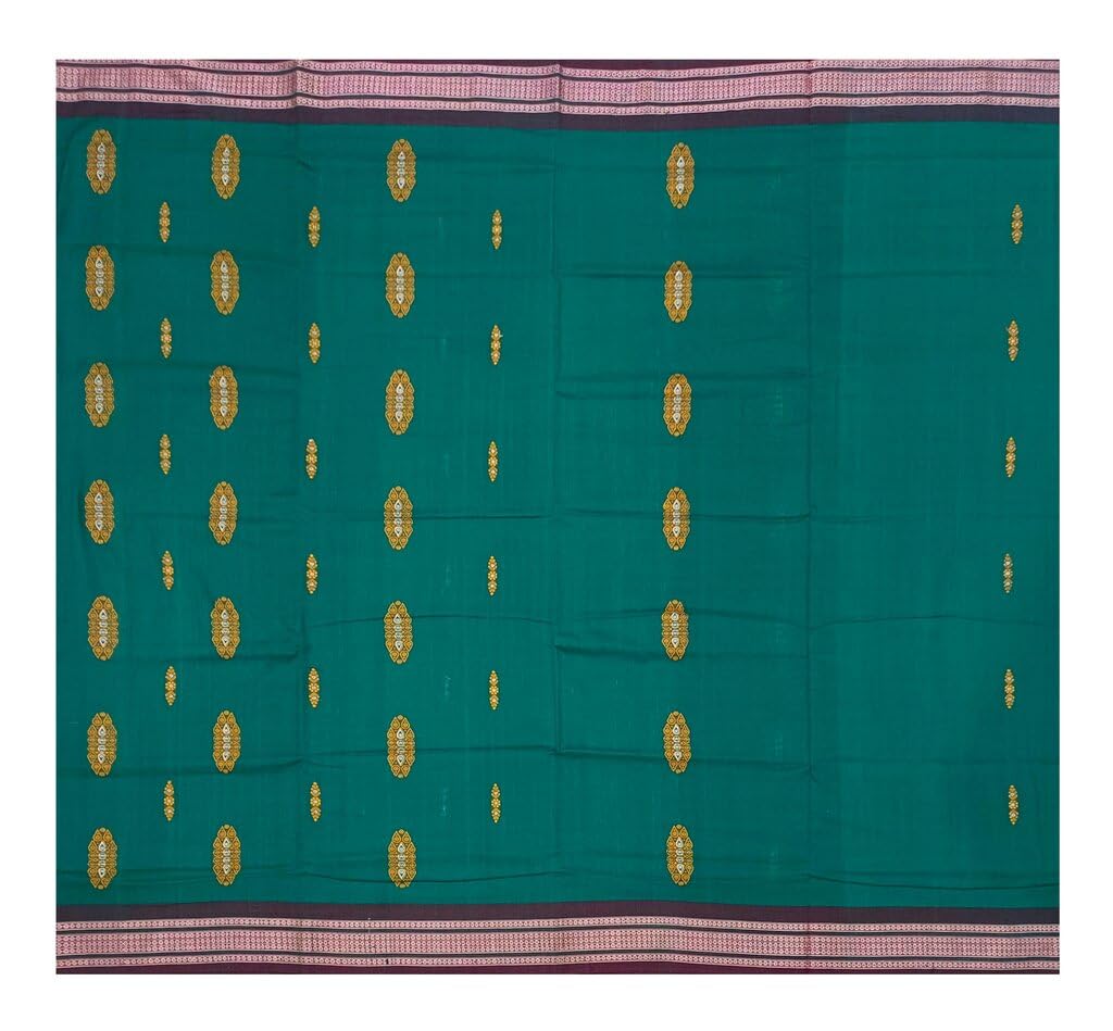 SAMBALPURI BANDHA CRAFT Sambalpuri bomkai cotton saree with blouse piece(Padam motifs in bottle green color base)