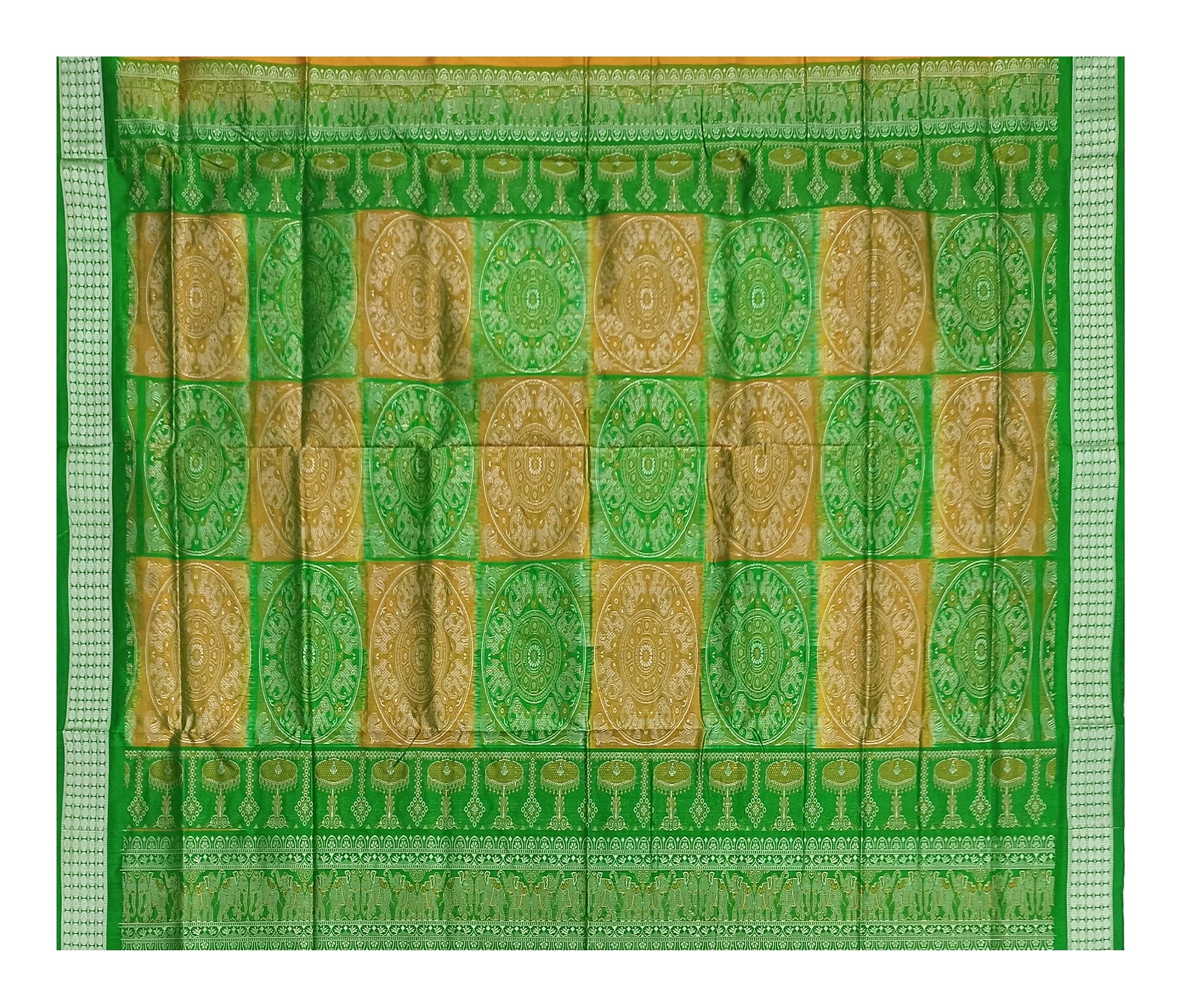 SAMBALPURI BANDHA CRAFT sambalpuri bomkai silk saree with blouse piece(flower motifs in mustard yellow base)