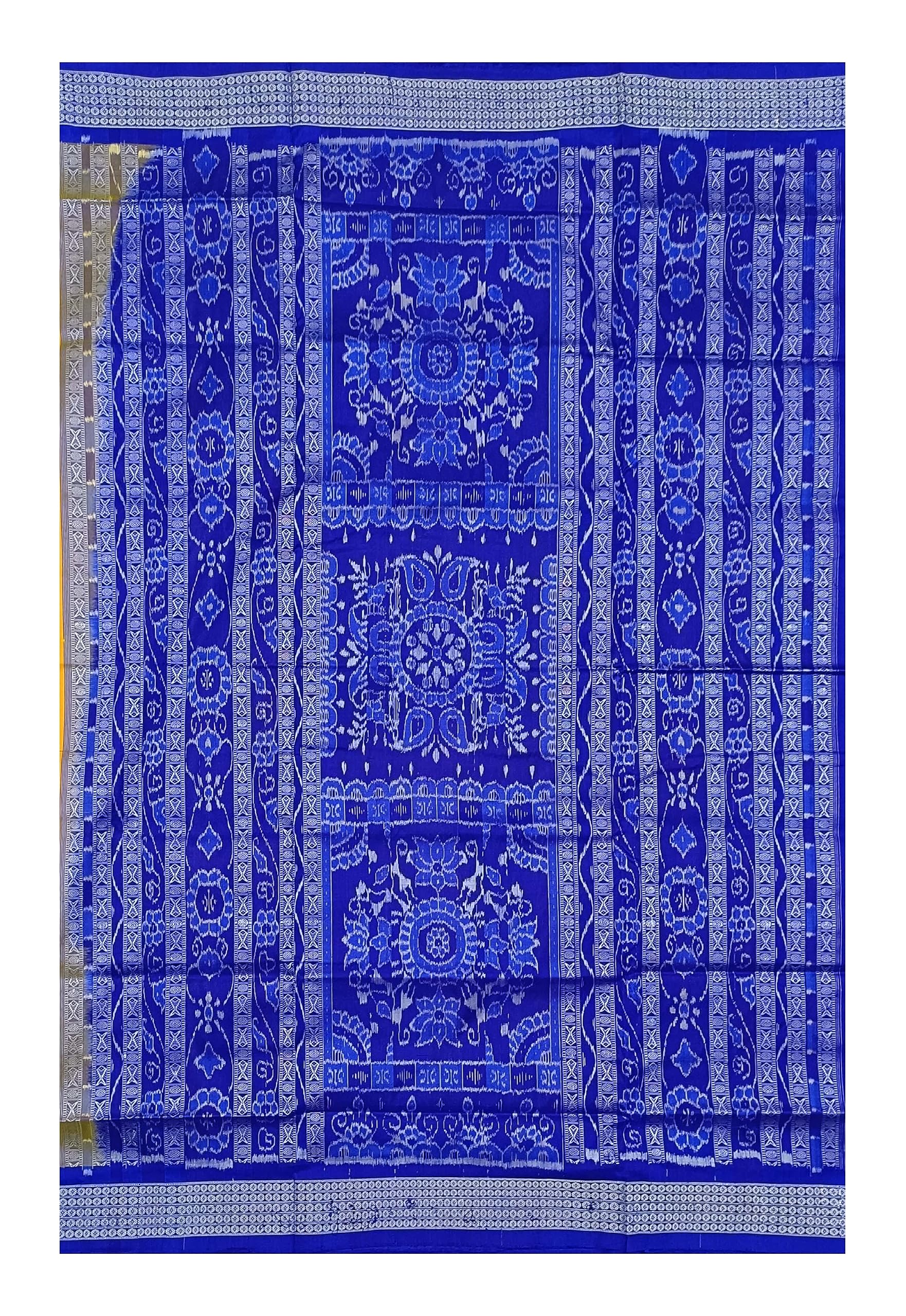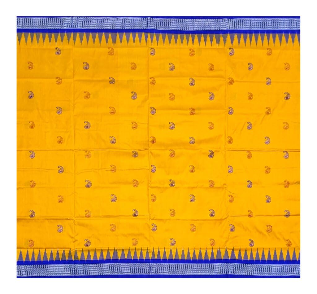 SAMBALPURI BANDHA CRAFT sambalpuri bomkai silk saree with blouse piece(flower motifs in turmeric yellow color base with blue color pallu and boarder)