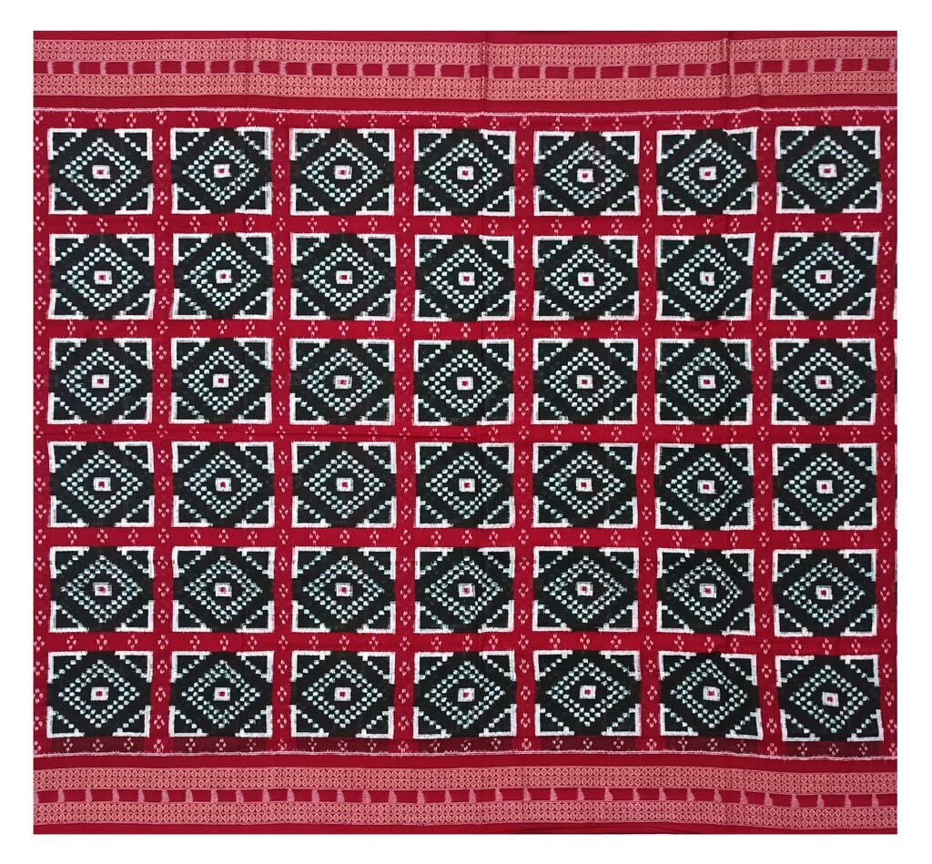 SAMBALPURI BANDHA CRAFT Sambalpuri cotton saree(SCSR127 Pasapalli design in black and red colors combination)