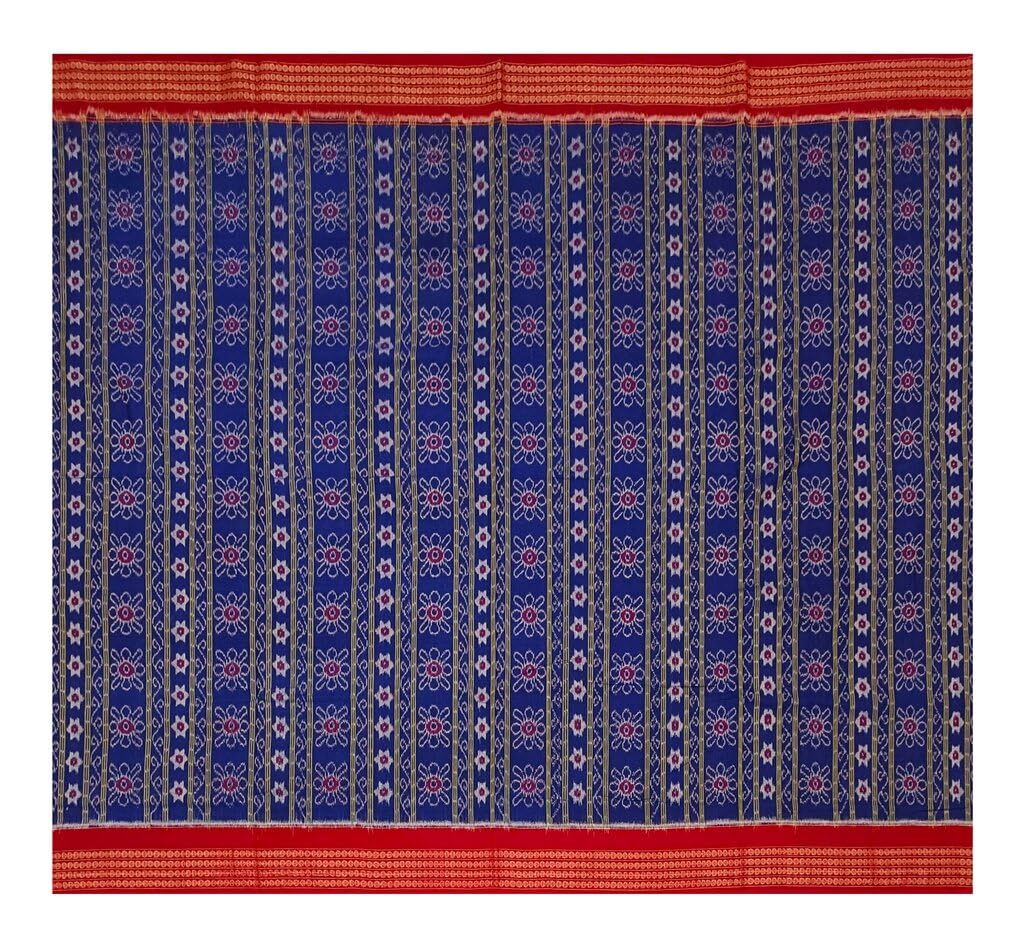 SAMBALPURI BANDHA CRAFT sambalpuri cotton saree with blouse piece(flower design in blue color base)