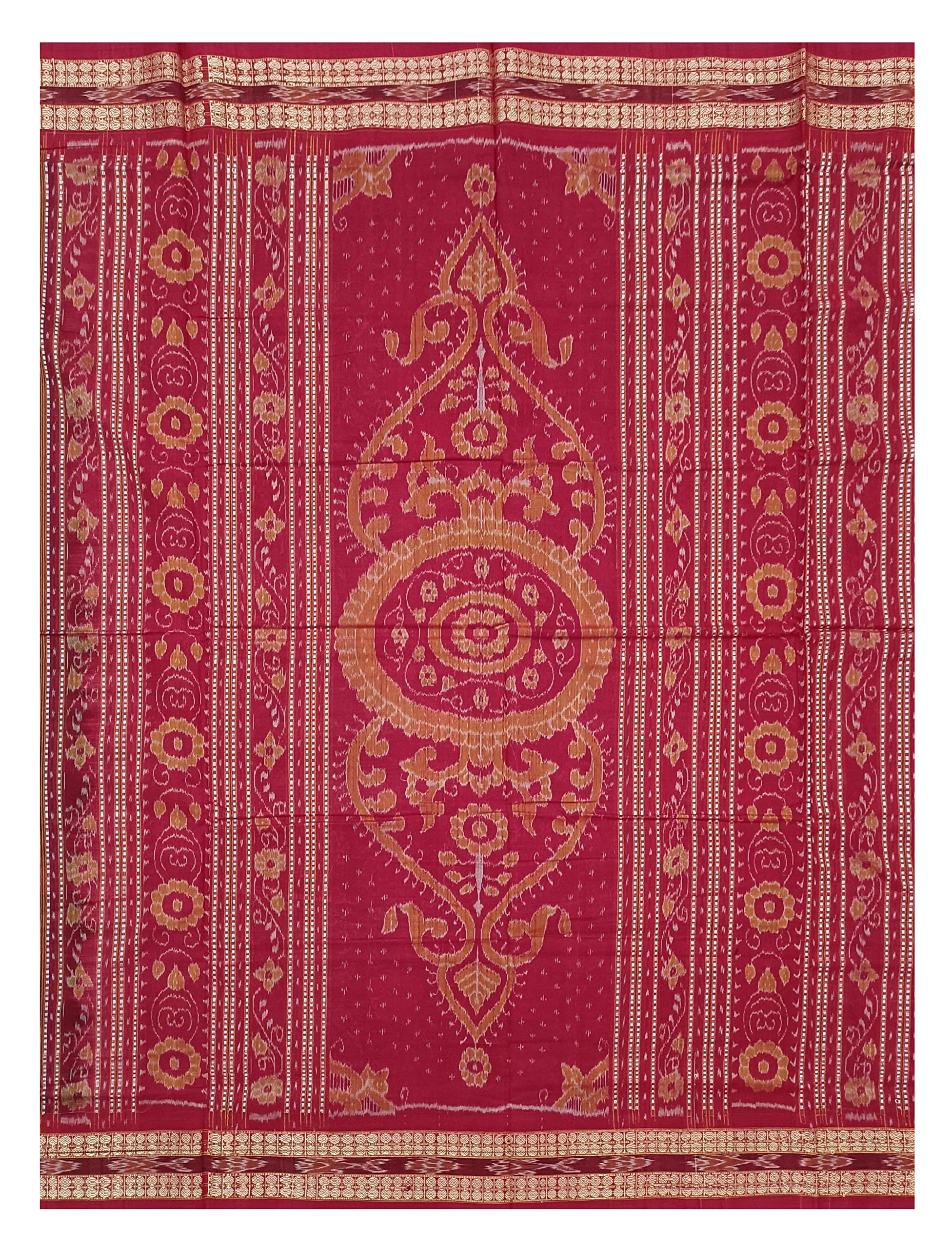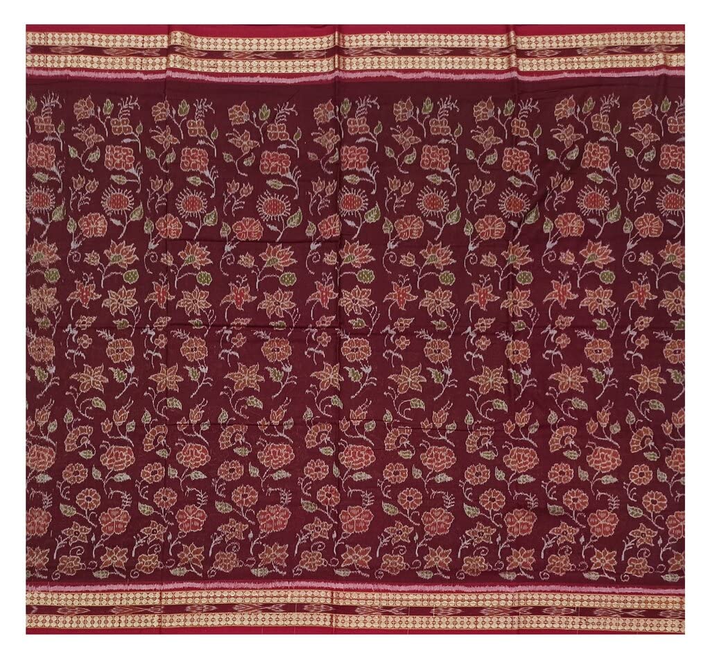 SAMBALPURI BANDHA CRAFT Sambalpuri cotton saree with blouse piece(Flower design in maroon color base)
