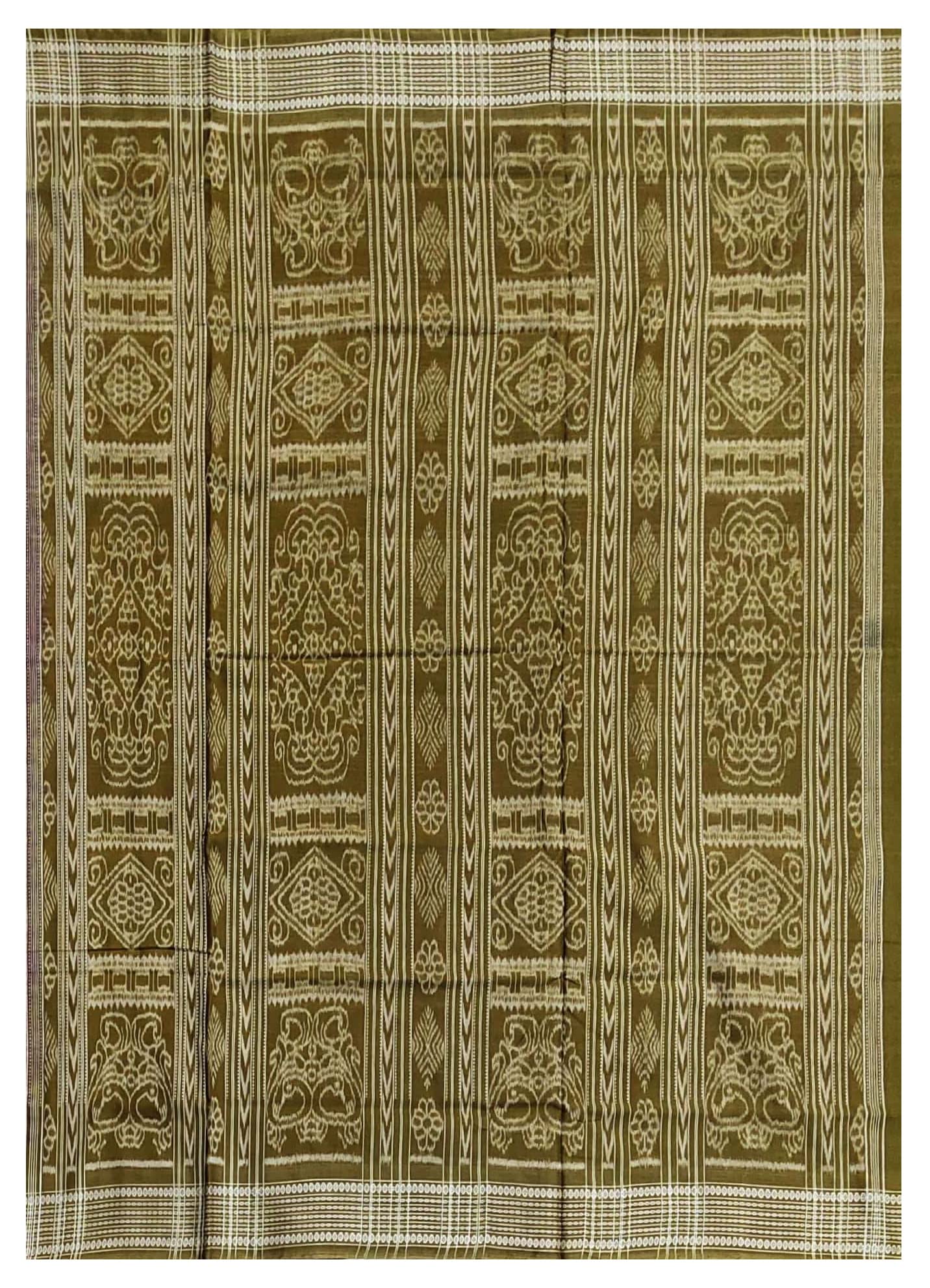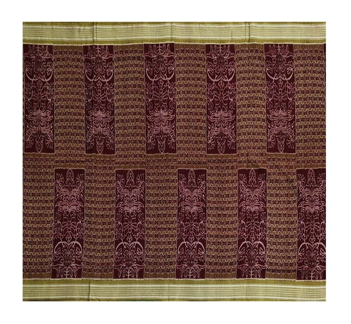 SAMBALPURI BANDHA CRAFT sambalpuri cotton saree with blouse piece(Light coffee and mehendi green colors combination)