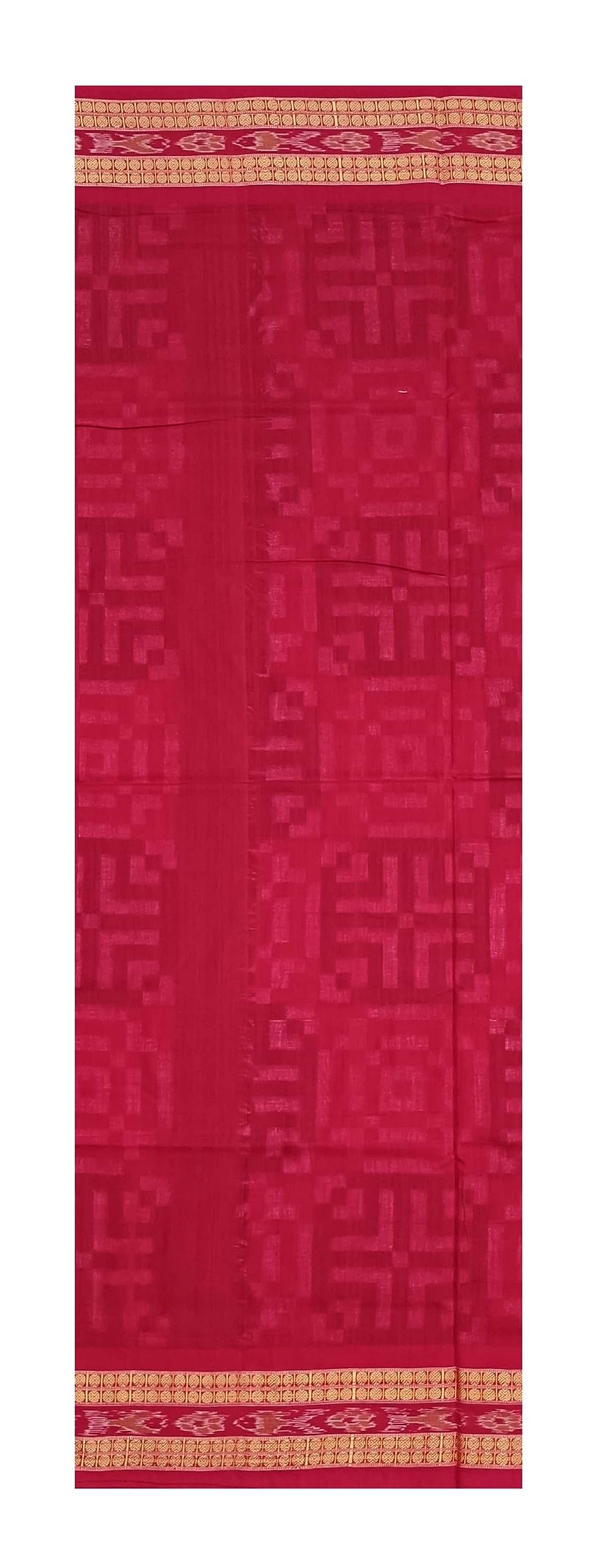 SAMBALPURI BANDHA CRAFT sambalpuri cotton saree with blouse piece(New Pasapali design in red white and black colors combination)
