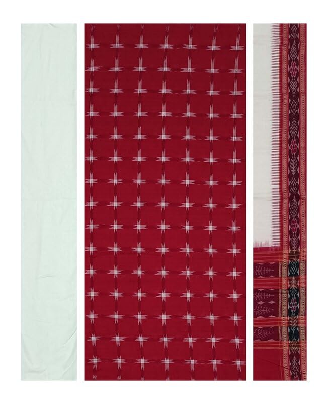 Star design sambalpuri cotton dress matrial set. red color base with star design in white color.
