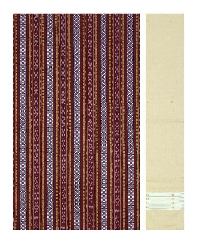 SAMBALPURI BANDHA CRAFT sambalpuri cotton dress material set(Triditional design in maroon color base)