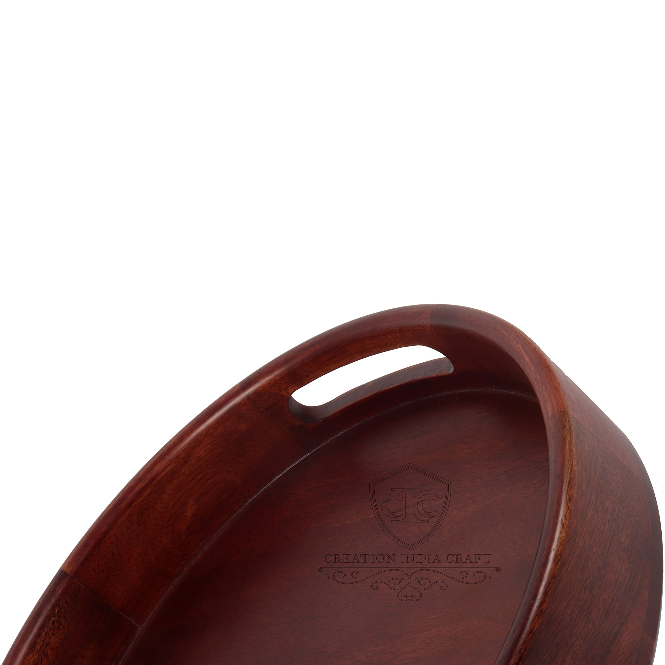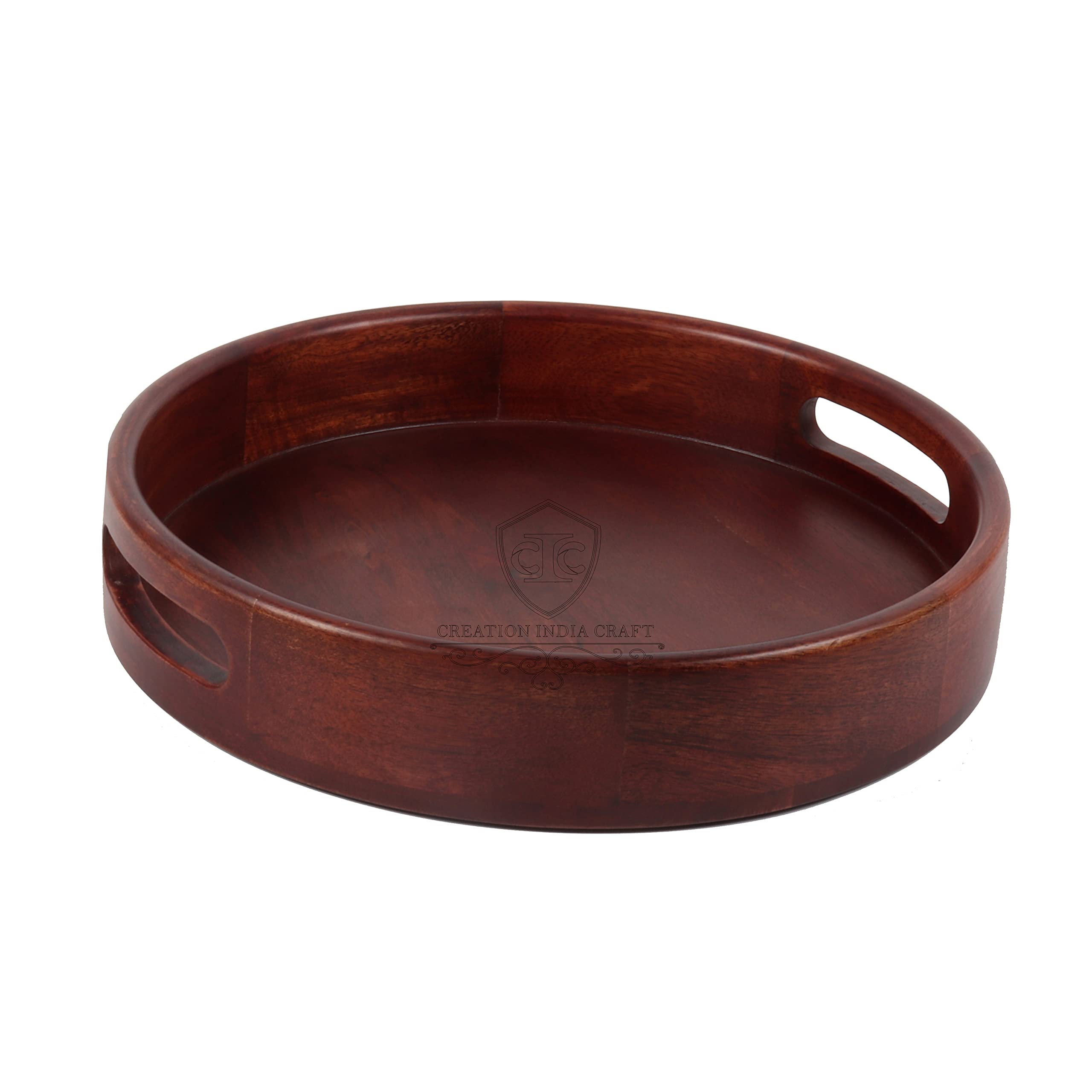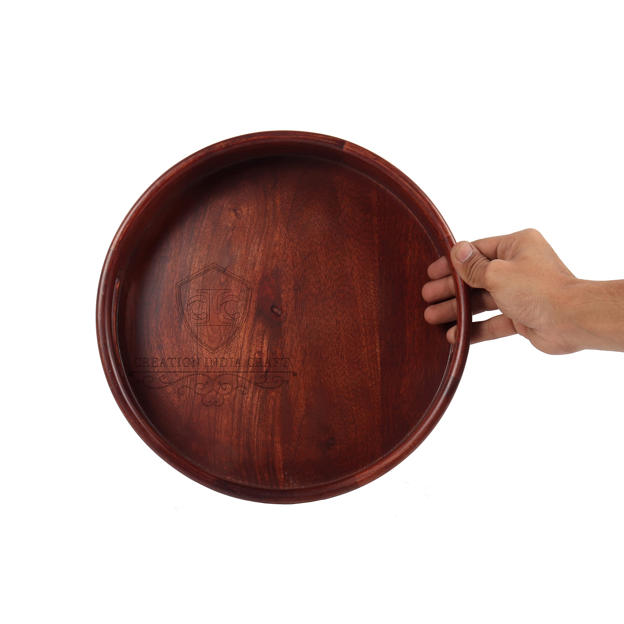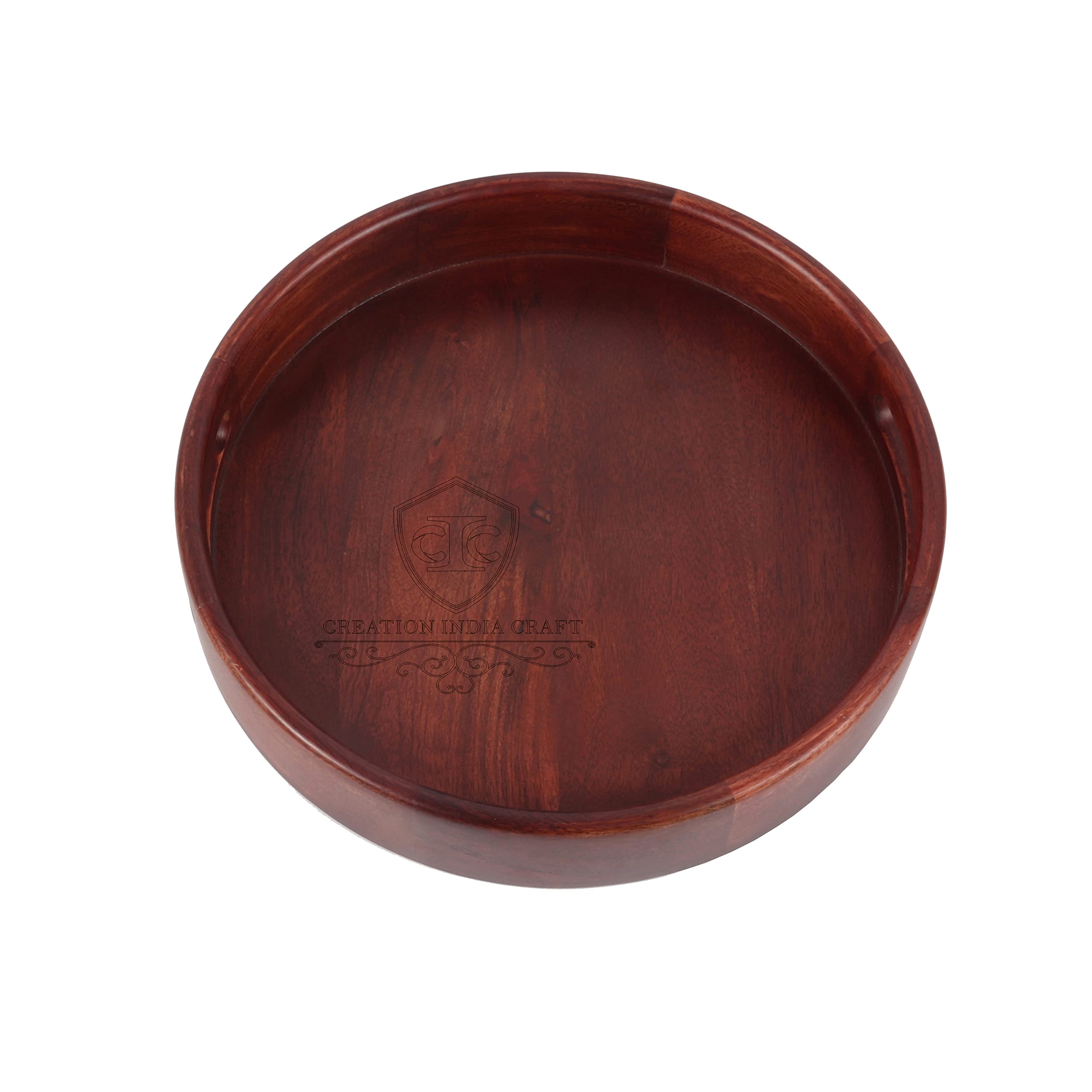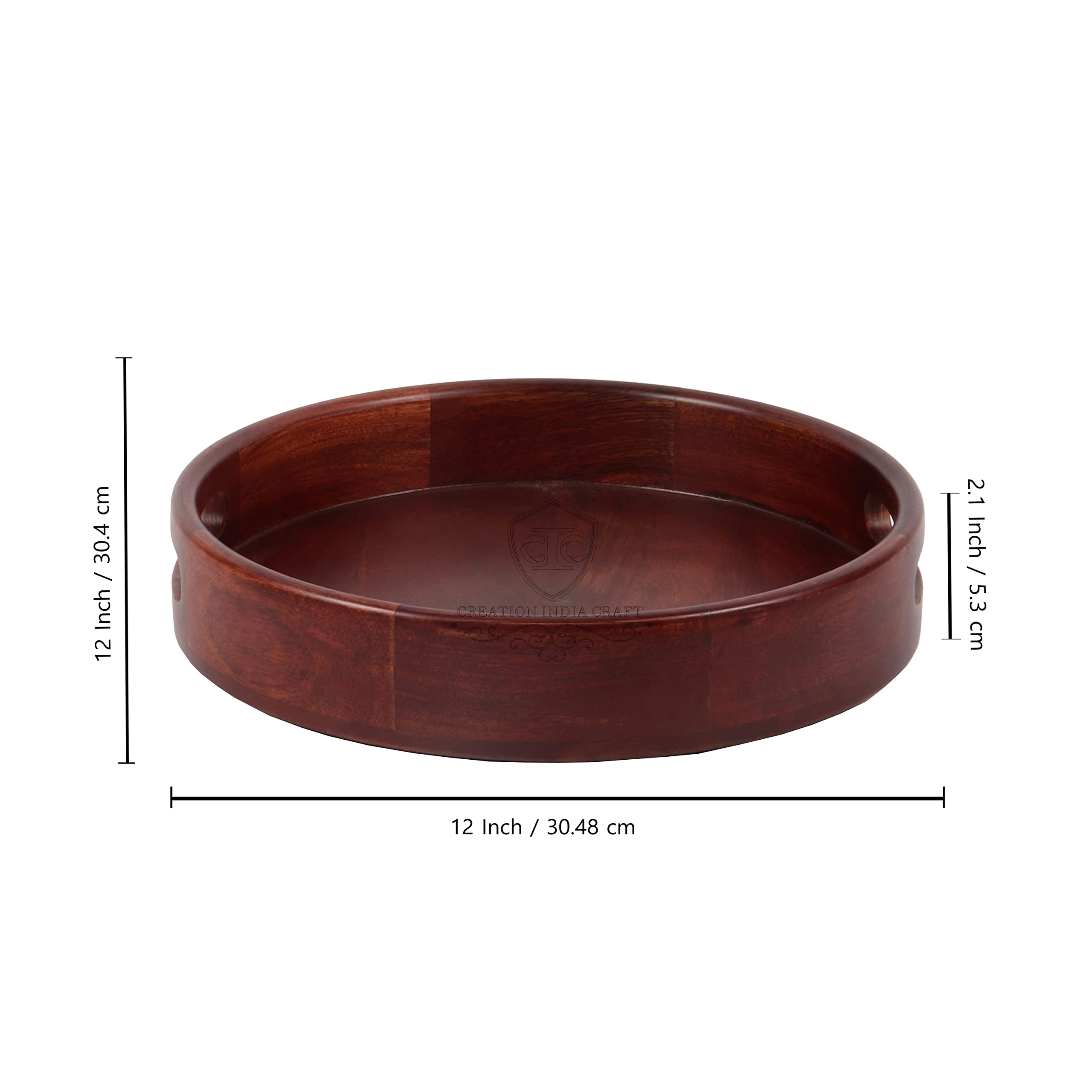 Classic Round Wooden Handmade Serving Tray - 12-inch Diameter - Unique Design