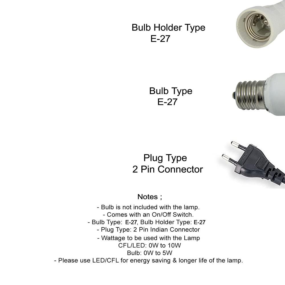Bulb not included. Brightness is adequate and ample to add to the aristocratic ambience of the lighted space. It throws a subdued glow instead of harsh light. They have provided an inbuilt switch in the wiring which is very handy. It is very light weight and easy to install. All you have to do is to fix the bulb, connect the plug to the socket, switch on the switch and the room is filled with light that doesn't hurt the eye but adds a magical touch to the ambience.