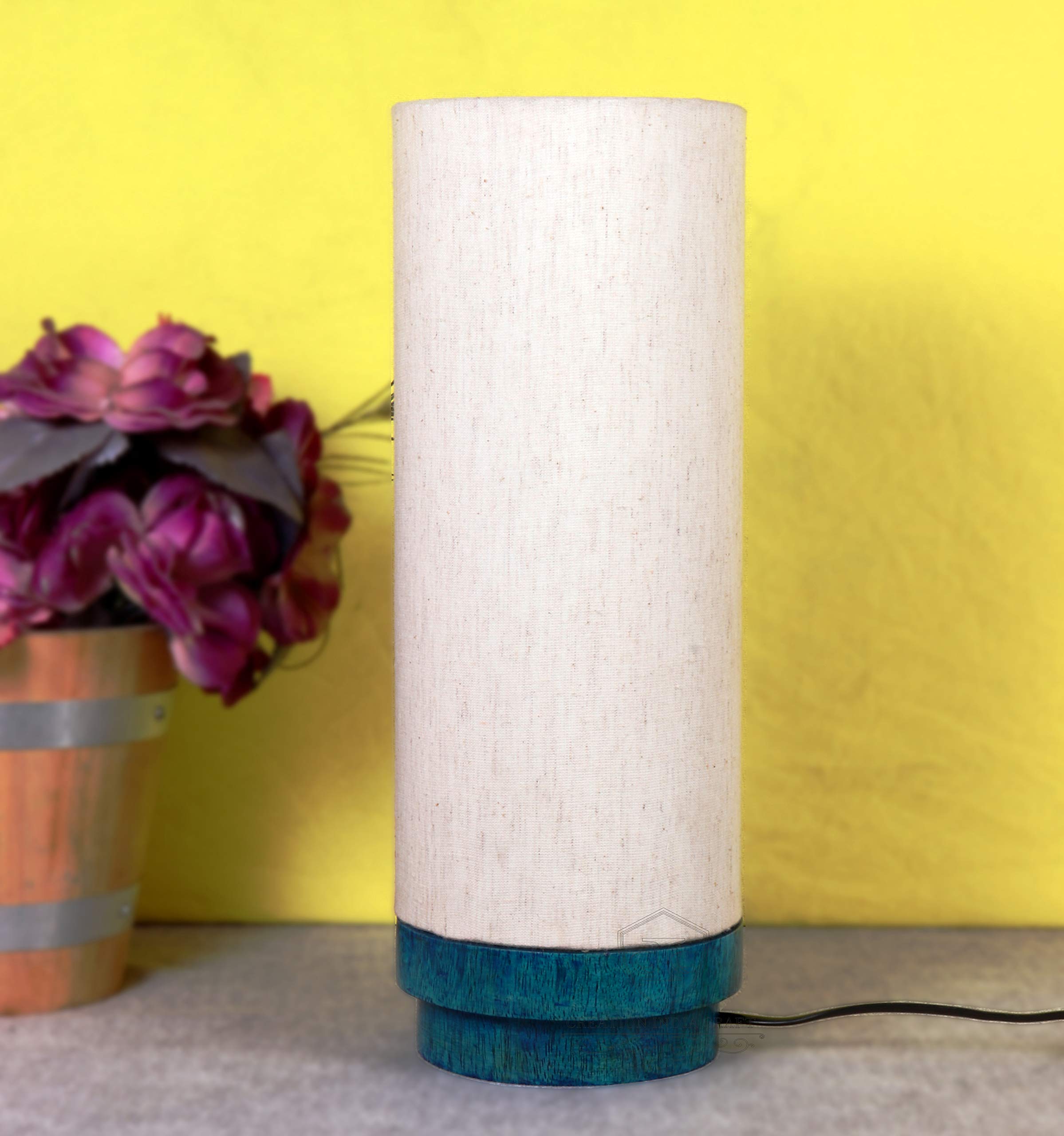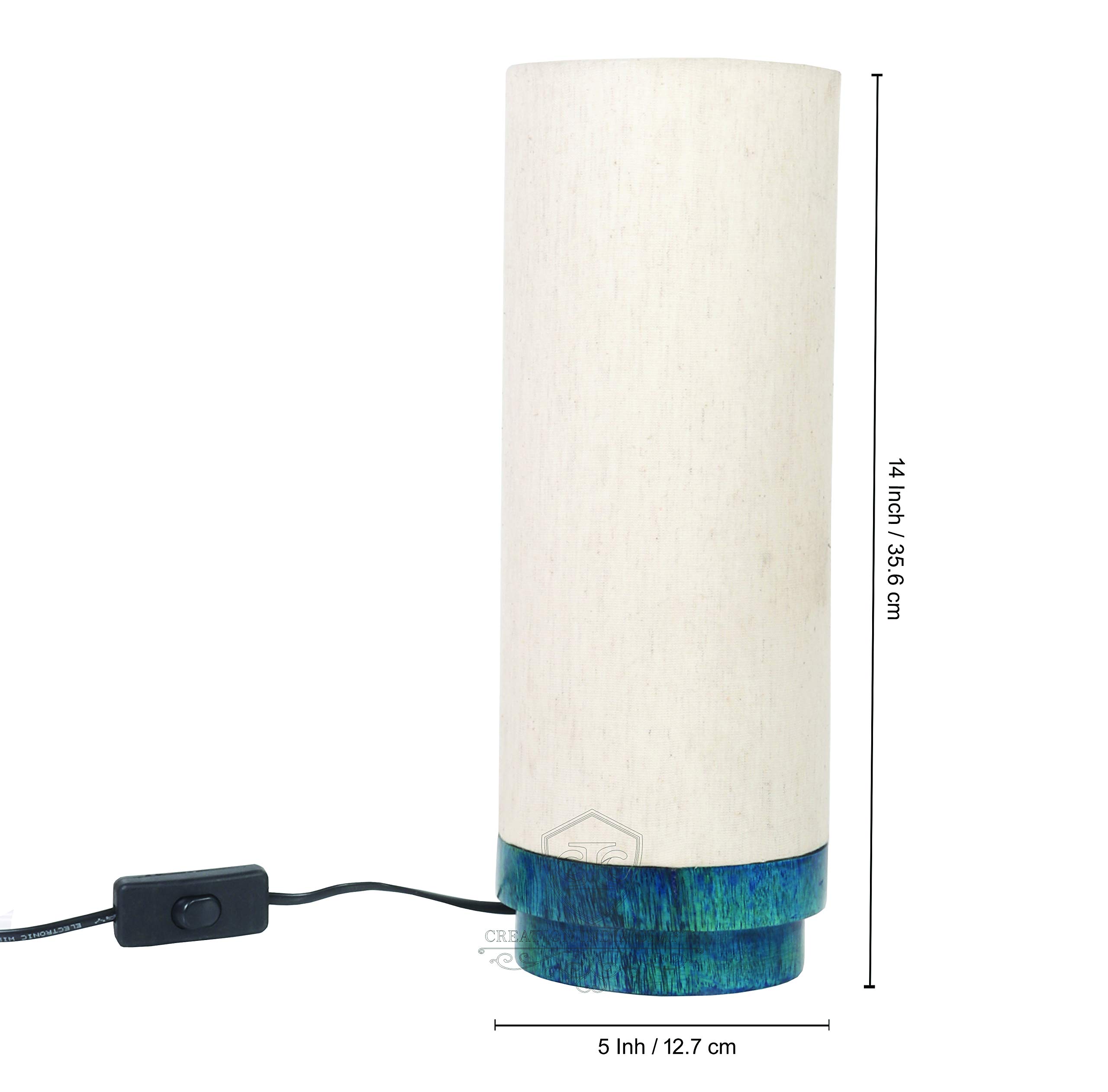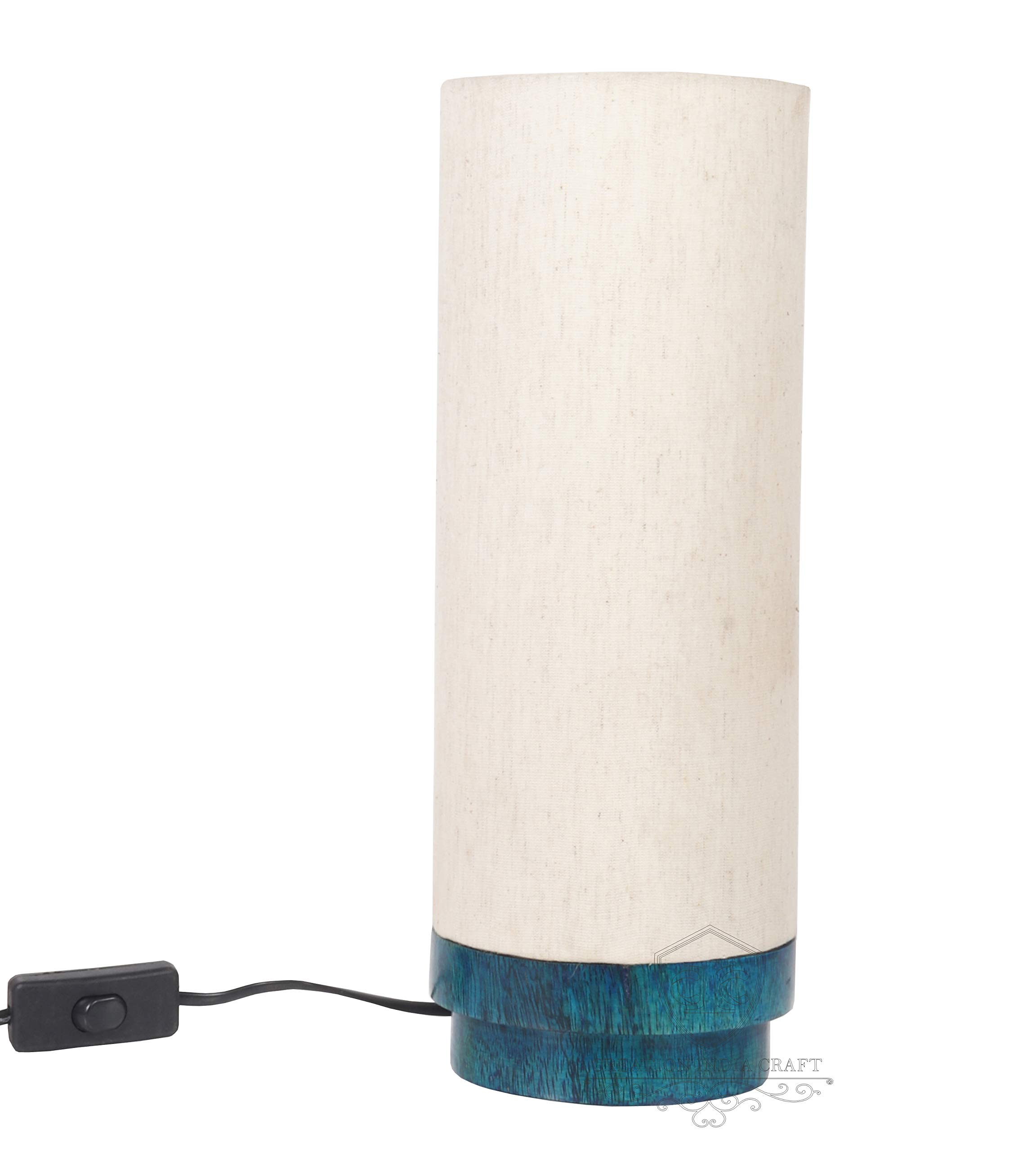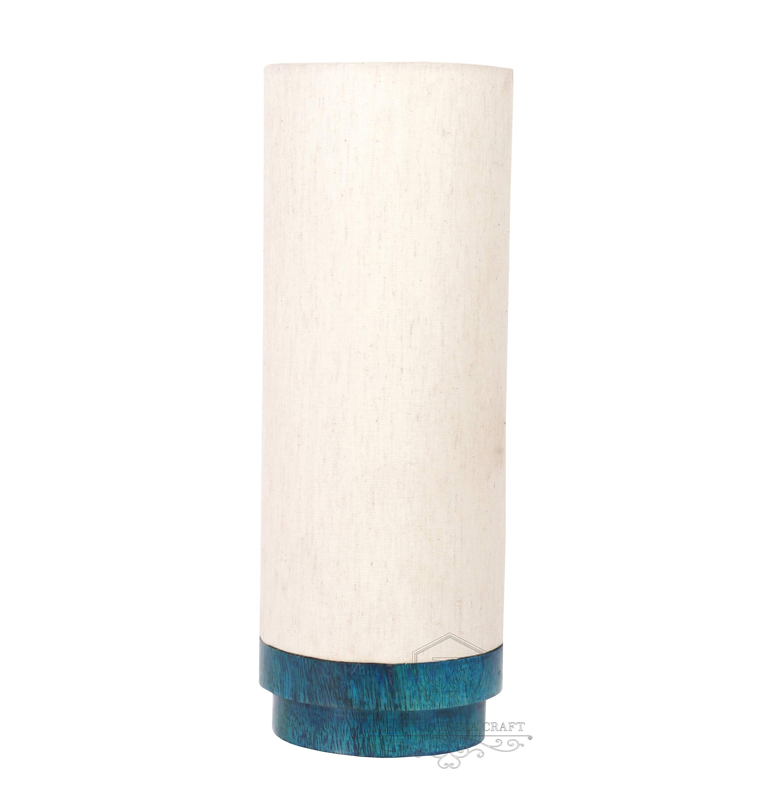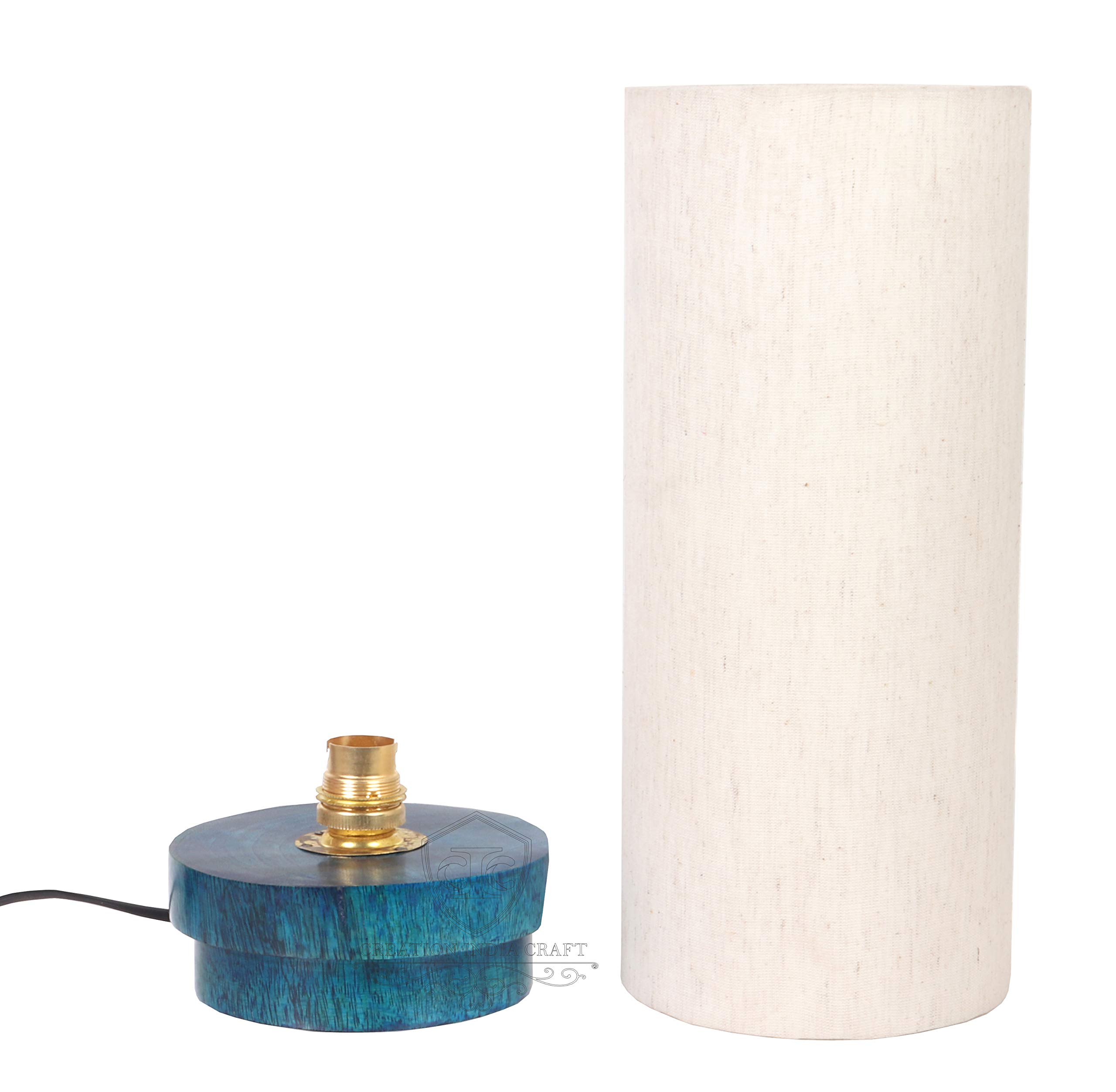 HomeFor DeletionWOOD CRAFTS OF RAJASTHAN Table Lamp Round Blue in Mango Wood Lamp for Living Rooms Bedrooms Home Decorative Study Bed Side Table Lamps for Home Decoration 14" Inch Without Bulb