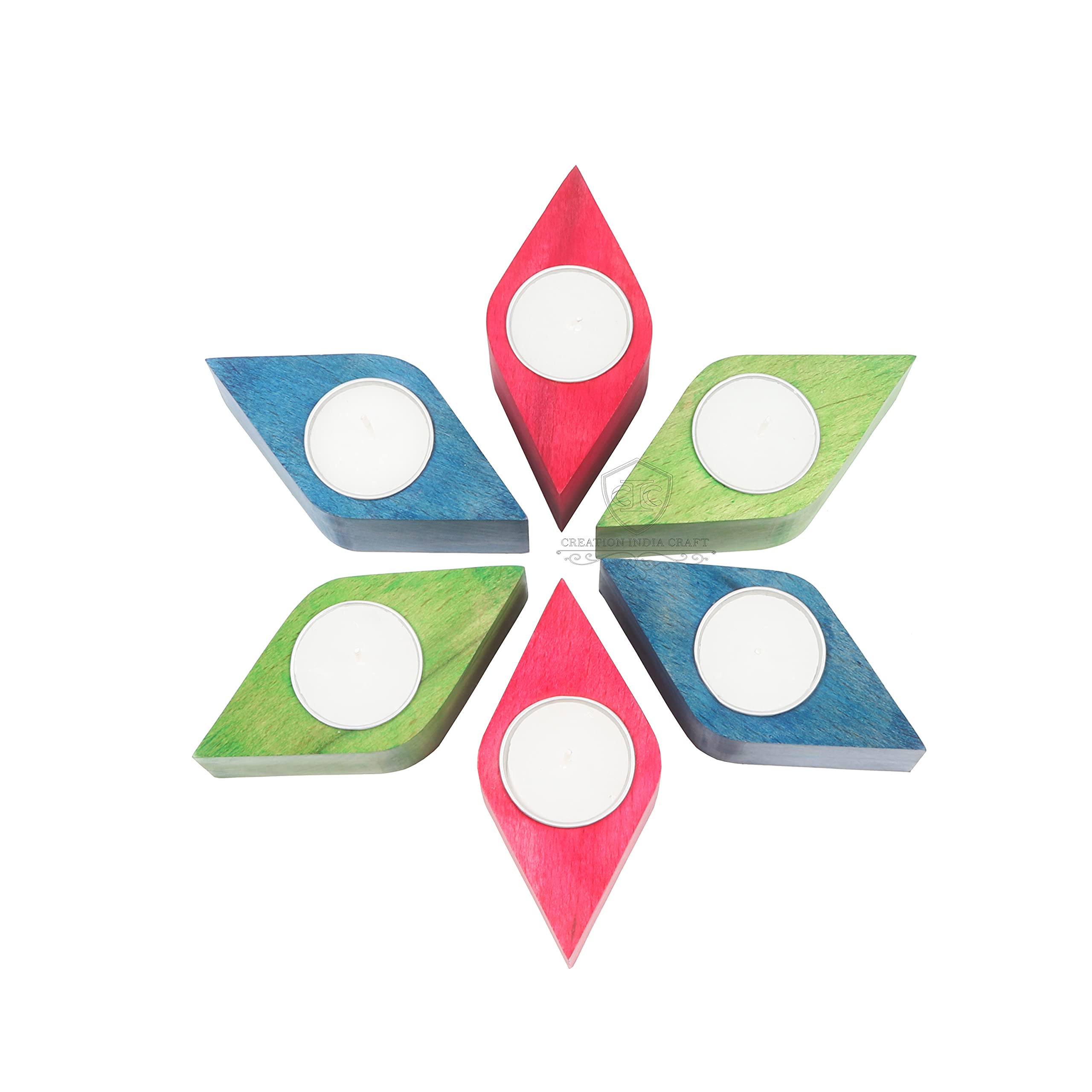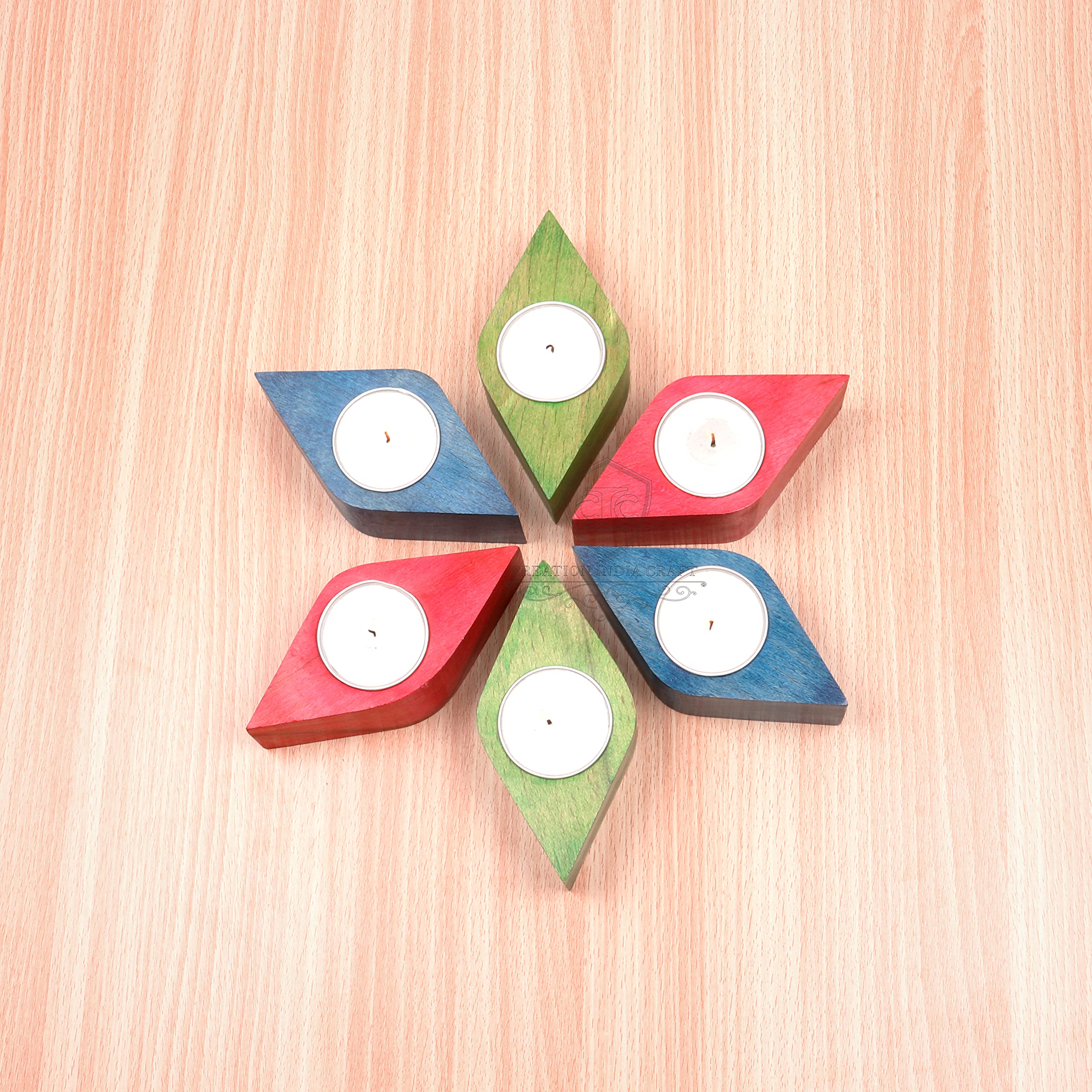 HomeFor DeletionWOOD CRAFTS OF RAJASTHAN Wooden Tea Light Holders Candle Holders for Home Dcor Tealight Stand Candle Stand for Home T Light Holder Diya for Diwali Multicoloured (Pack of 6)