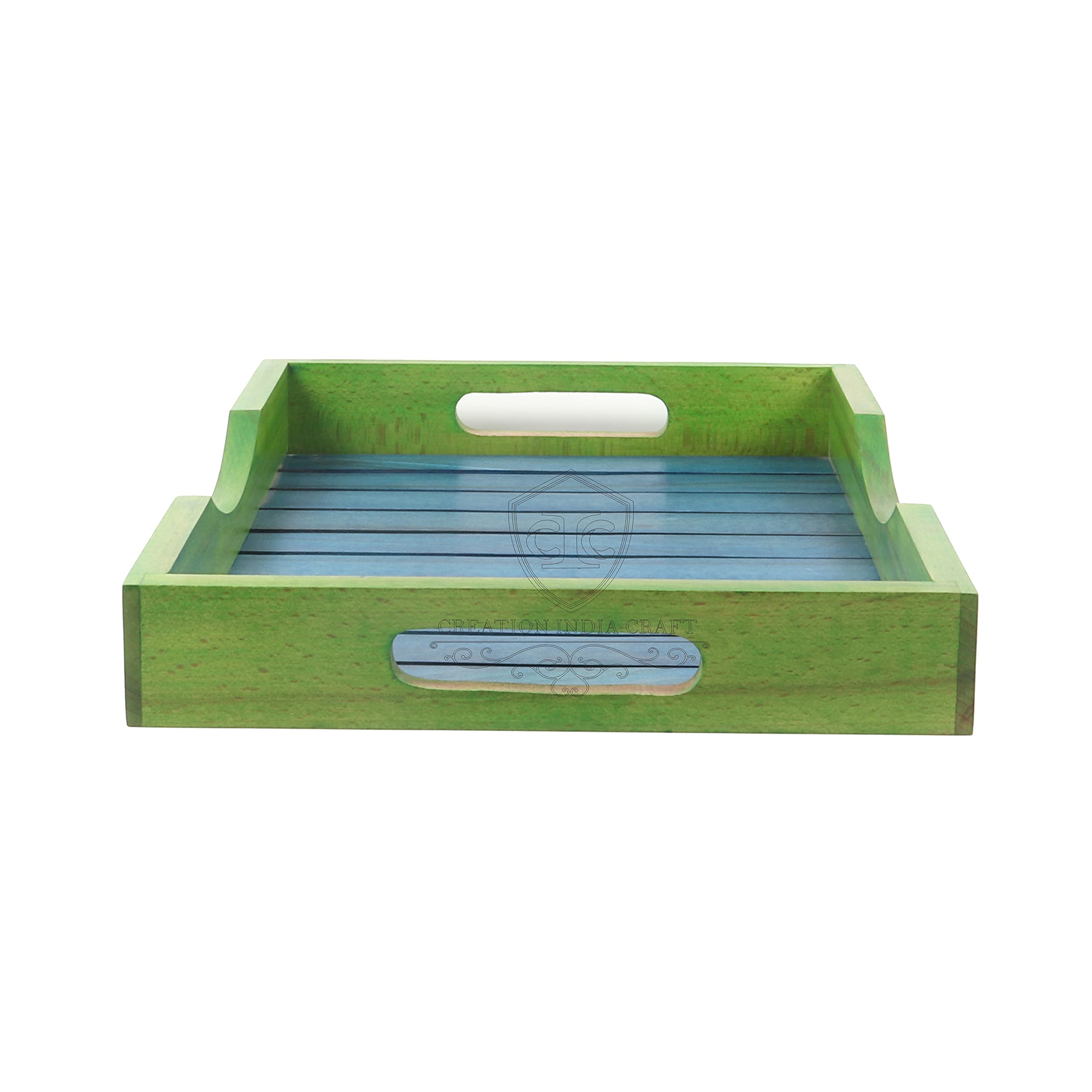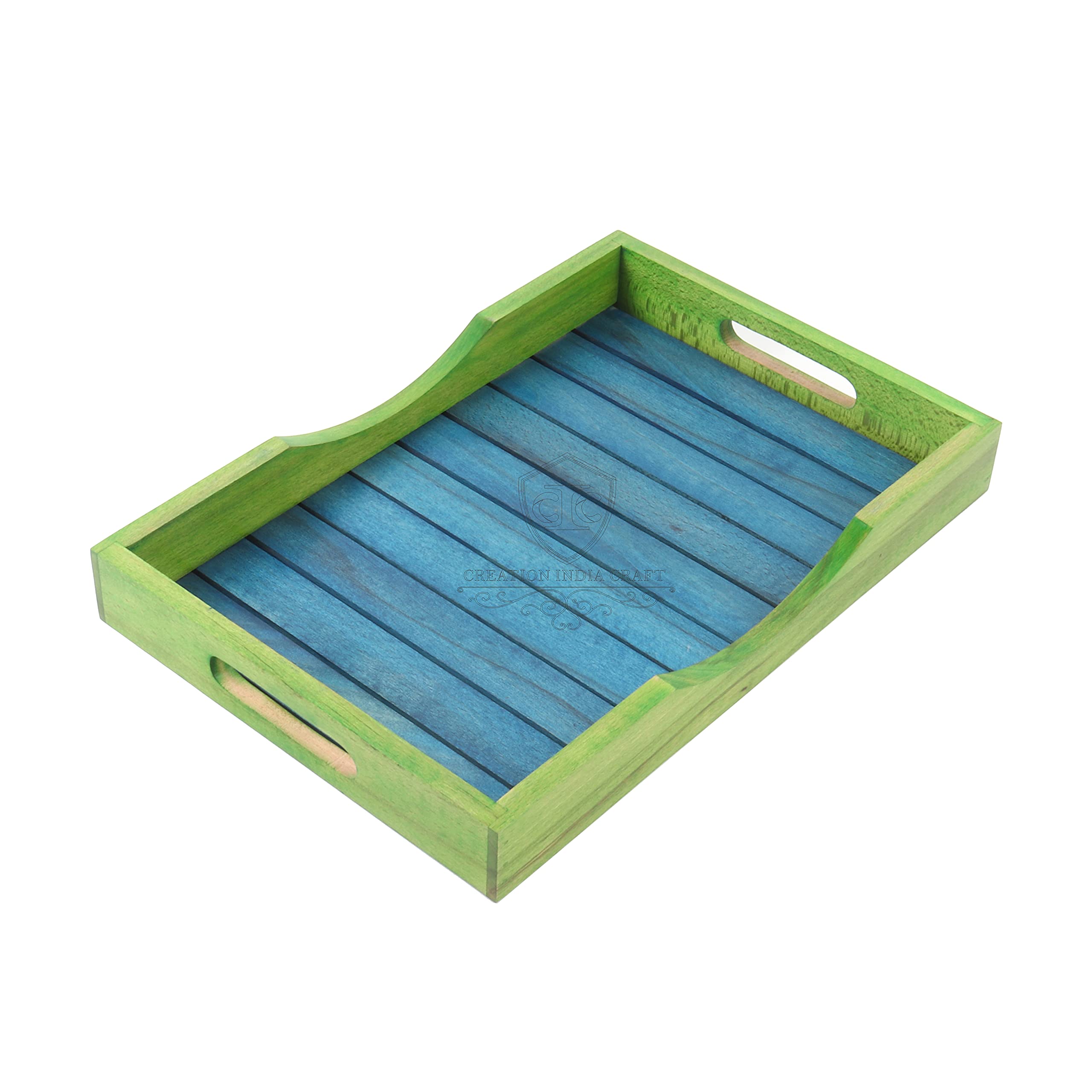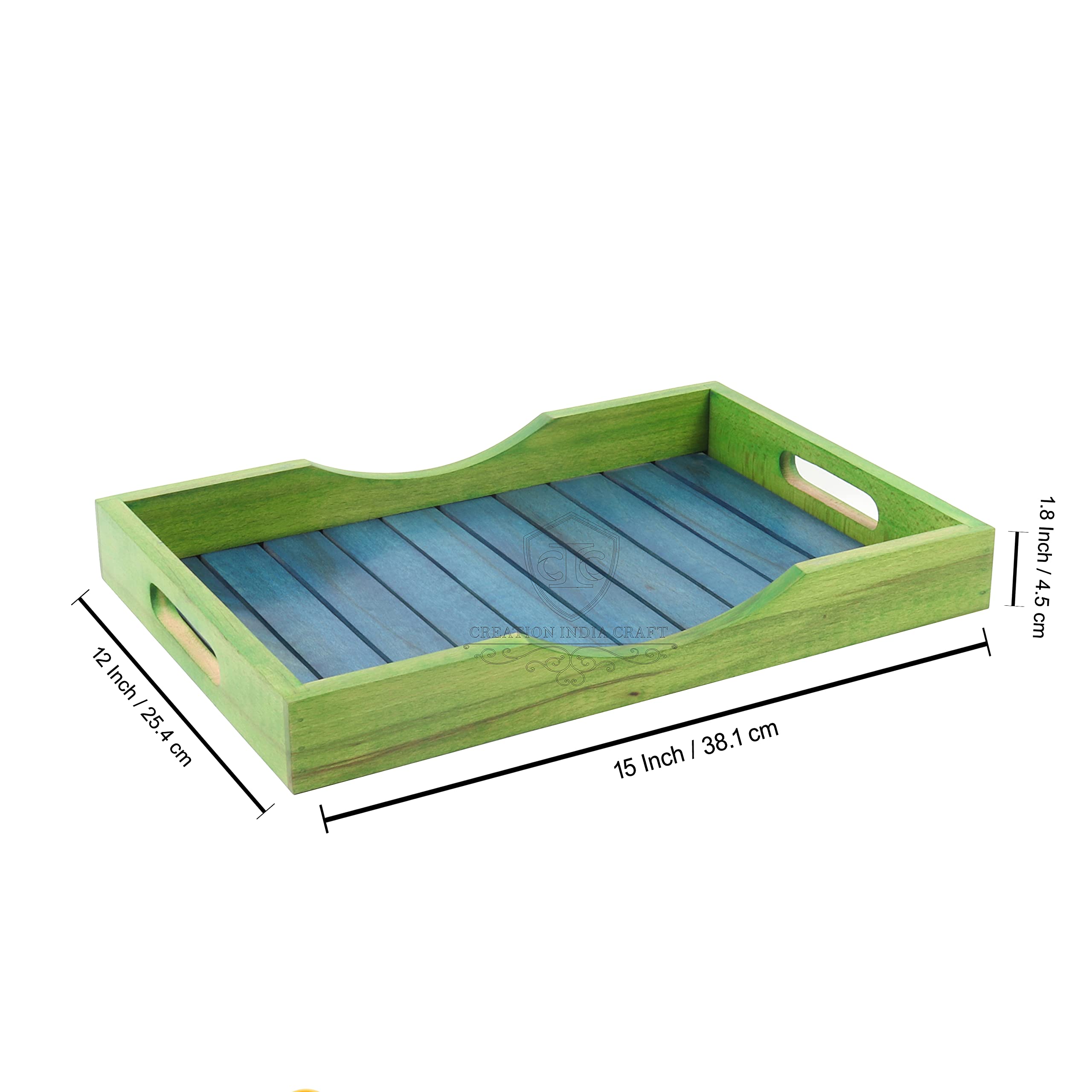 HomeFor DeletionWOOD CRAFTS OF RAJASTHAN Wooden Tray for Serving Decoration for Dining Table Home Kitchen Decoration Dinner Snack Coffee Tray for Home Decoration Multipurpose Tray (in Blue)