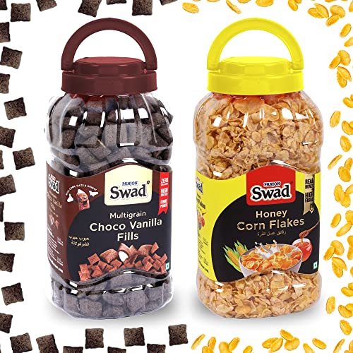 Swad Honey Corn Flakes & Vanilla Fills (Wholegrain Chocolate healthy children Snack Cereal) 2 Jars 650 g is a tastier & healthier breakfast experience that you can reward yourself with every morning!