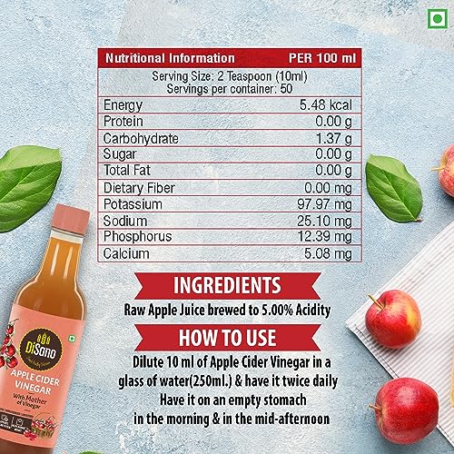 Disano Apple Cider Vinegar With Mother Vinegar 500ml Each (Pack Of 2)