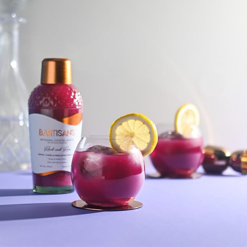 Hurling stones at a jamun tree or violently shaking the branch as the jamuns fall from the tree is a classic 90s thing isnt it? Some shatter into pools of purple and some remain round and plump the perfect pick! And just when you have a handful the guard comes running to shoo you away stealing is forbidden after all! This mixer is an ode to that sweet and sour laughter those purple stained mouths and the pure sense of achievement and victory! When you sip this cocktail first theres a burst of sweet and sour flavor and then it settles with the savory taste of the jeera lingering tempting you to take another sip.