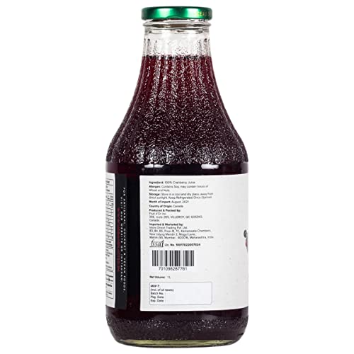 Canadian Cranberry Juice 1 Litre (Unsweetened No ed Sugar 100% Natural Cranberry Juice Good for UTI Health Perfect for Cocktails and Mocktails]Enjoy this healthy and pure cranberry juice with no ed sugar or and made from the first-pressing of select cranfrom Canada. This cranberry juice is loaded with antinutrients and proanthocyanidins that prevent health ailments such as UTIs and . The pressing and bottling are done in-house at Canadian Factory and the result is a delicious and exceptional quality cranberry juice with no ed sugar or alternate sweetener.This 100% pure unsweetened cranberry juice is made from real cranfrom first-pressing and contains 100% fruit content.Made with 100% pure cranstraight from the Cranberry Bog.Cranberry juice is unsweetened and concentrated in its flavour best consumed with about 4 parts of water for 1 part of juice along with a sweetener of your choice.With an array of naturally occurring health benefits from crana 70 ml serving of cranberry juice everyday can help the of recurring UTI'sThis 100% natural cranberry juice is free from all nasties and a rich source of Vitamin C- Simply Good Food!