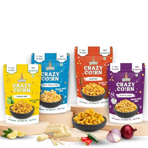 Skippi Crazy Crunchy Corn Kernels - Gluten Free Snacks | Healthy Snacks for Weight Loss | Crispy Corn Snacks Combo | Freeze & Dried Sweet Corn Snacks in Fresh | Frozen Snacks & Dry Snacks | Corn Chips Mixture Namkeen | Snack Mix
