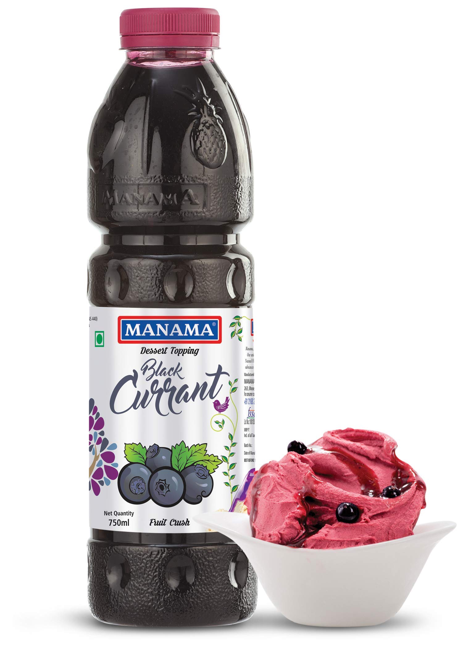 Package includes 750ml bottle of Manama Black Currant Fruit Crush. Pour some Manama Fruit Crush on fruity dessert toppings to make delicious desserts ice creams and shakes. Manama a trusted brand for quality and flavour. Manama`s unique blending process helps retain the natural flavours and reduces the usage of synthetic substances and preservatives during manufacturing.