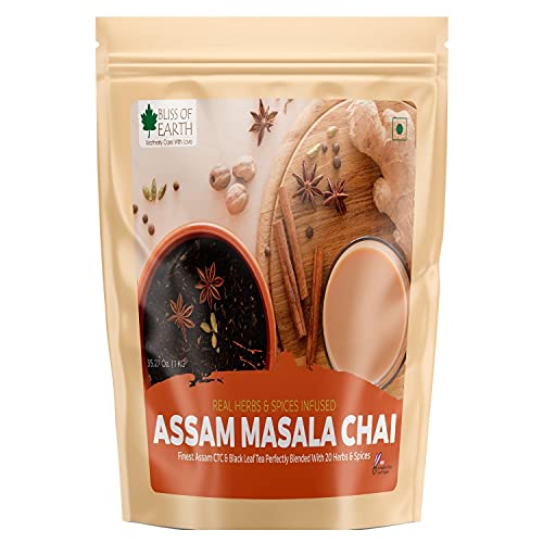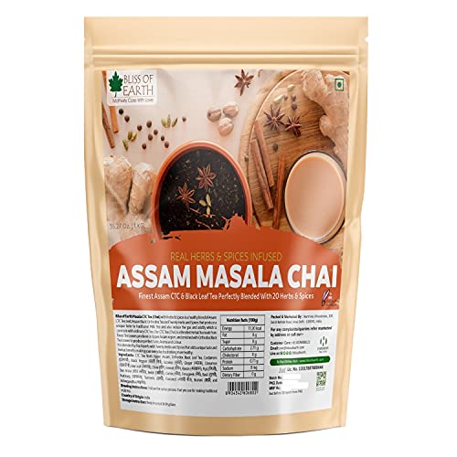 Bliss of Earth Masala CTC Tea (Chai) with Herbs & Spices is a healthy blend of Assam CTC Tea Leaf Assam Black Orthodox Tea and Twenty Herbs and Spices that produce a unique taste to traditional Milk Tea and also reduce the gas and acidity which is common with ordinary CTC tea. Our CTC Tea (Chai) is a Blended Herbal Tea made from finest Tea Leaves produces in Upper Assam region and enriched with Orthodox Black Tea Leaves to produce perfect Taste Aroma and Colour. It is blended by Tea Experts with Twenty Herbs and Spices that add a unique taste and herbal benefits making your everyday tea drinking more healthy.
