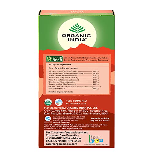 • Soothing digestive support. Certified organic healing herb and tulsi-holy basil.