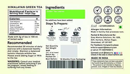 TEACURRY Himalayan Green Tea - 100 Gram / 50 Cups | Helps With Weight Management | Green loose tea | All Natural