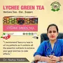 Lychee Green Tea typically include green tea leaves and lychee fruit or lychee flavoring.