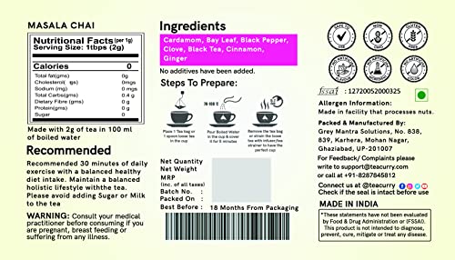Ginger cinnamon black pepper clove cardamom bay leaf and black tea leaves