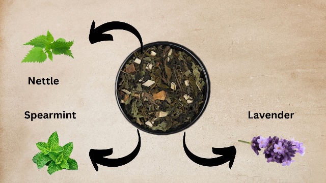 Lavender Ashoka Asafetida Spearmint Tulsi Fenugreek Nettle ginger turmeric cinnamon fennel.