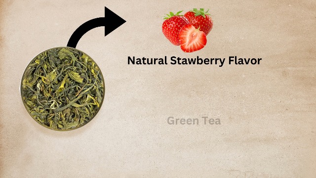 Strawberry Green Tea are green tea leaves and dried pieces of strawberries.
