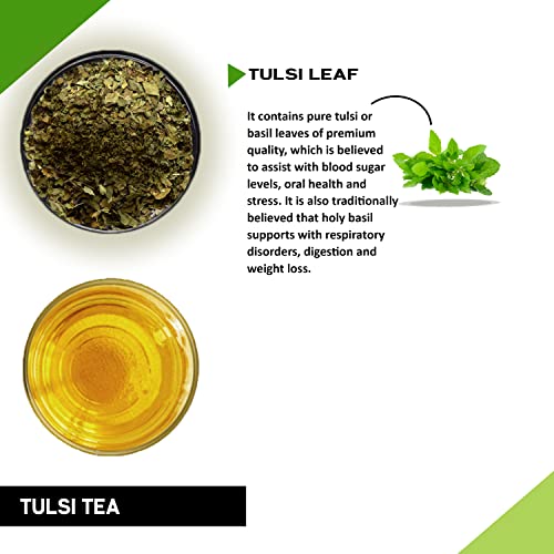TEACURRY Tulsi Tea (100 Grams, 200 Cups) - Helps with Blood Sugar, Dental health & Stress, Brazilian Tulsi