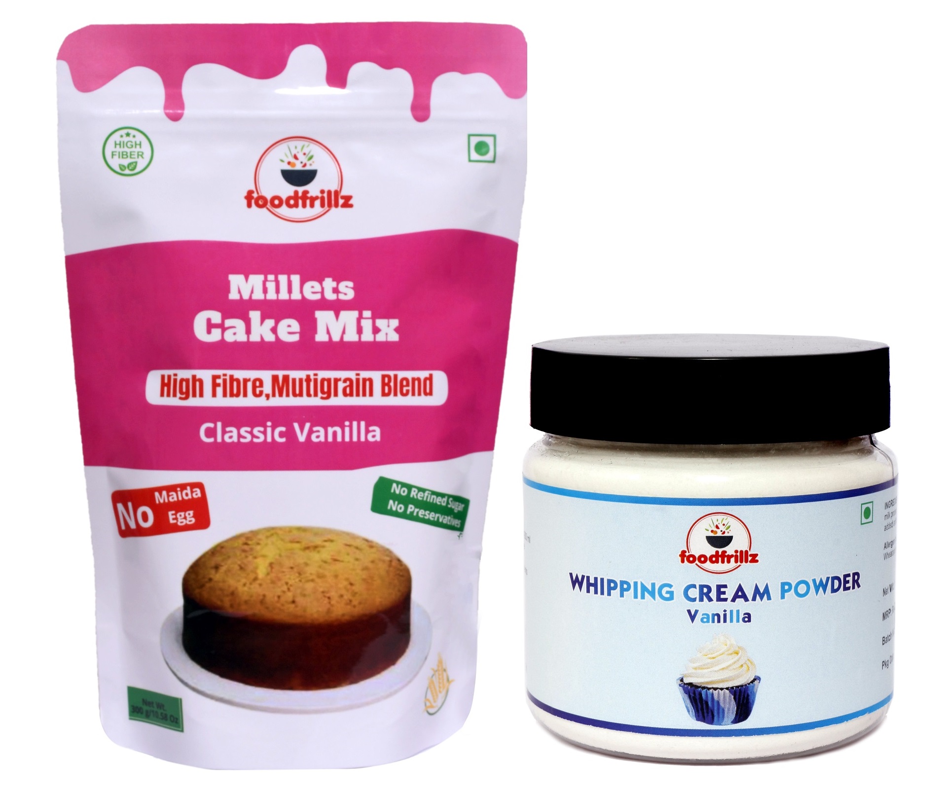 Foodfrillz Millet: Deliciously Healthy Cake Pre-Mix (Classic Vanilla Flavor) 300grms with Whipping Cream Powder (Vanilla)100 grms Combo Pack