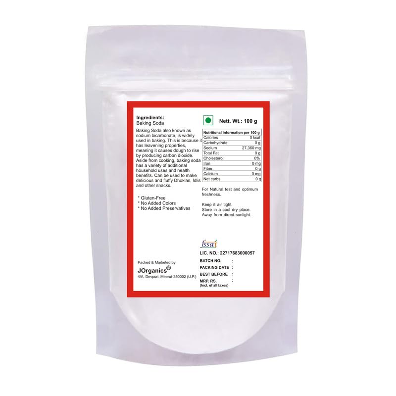 JOrganics Baking Soda For Cake & Cooking (Cookies Idly & Dosa) Baking Soda Powder 100Gm
