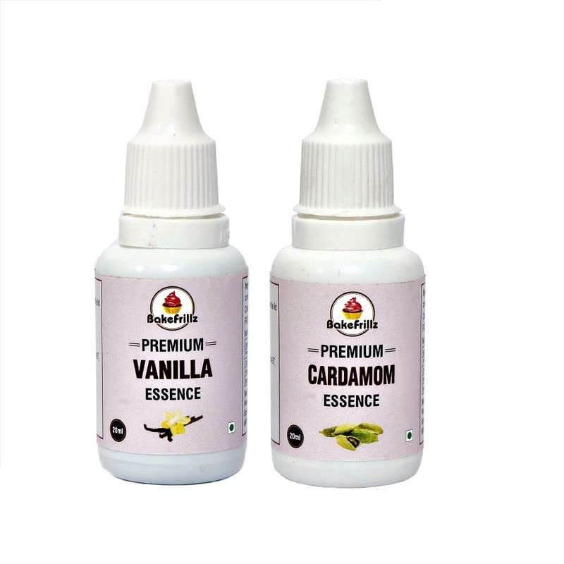Bakefrillz Vanilla Food Essence & Cardamom Food Essence for Cake ice Cream Desserts 20 ml Each