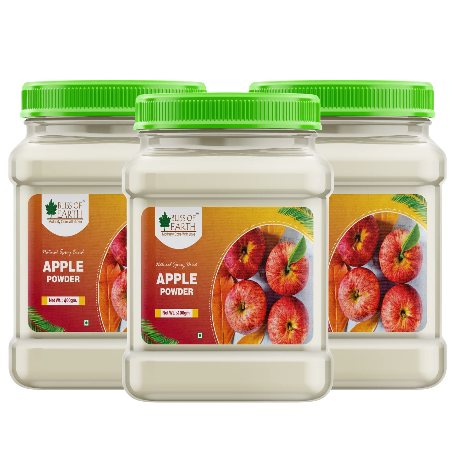 Bliss of Earth 3x400Gm Apple Powder natural Spray Dried Great for Smoothie | Apple juice | apple pie | Cake | Ice Cream (pack of 3)