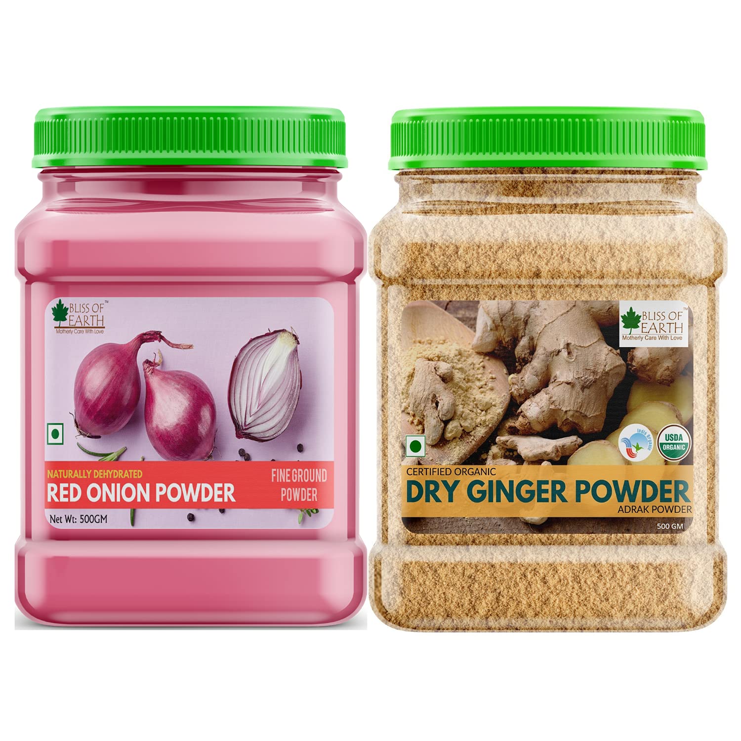 Bliss of Earth Natural Red Onion Powder is dehydrated ground onion that is most important culinary ingredients in every kitchen. Its characteristics strong flavour when raw makes it great addition on salad. Its sweet flavour when cooked is a key element for meats poultry seafood and all kind of side dishes. Bliss of Earth ginger powder is certified organic versatile herb known for centuries for its health benafits. We dehydrate the ginger at low tempratures so it ratain all the nutrients and amazing flavor. There are 115 chemical compounds found in ginger root making it a super antioxidant and anti-inflammatory agent. Ginger has been proven to aid in boosting immunity digestive support and cough & cold. We love how fresh ginger makes us feel. Its natural flavor makes a perfect addition to your favourite juice smoothie or tea.