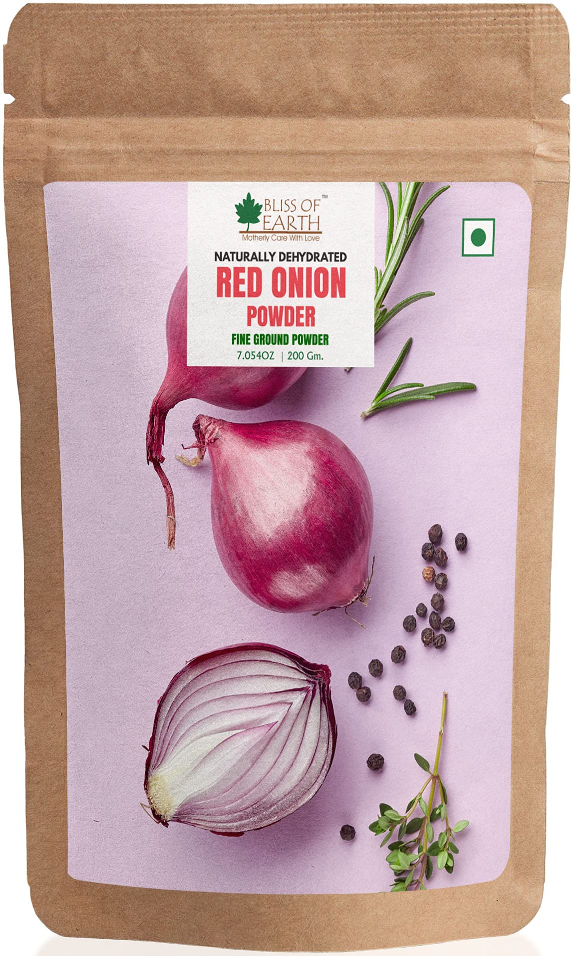 Bliss of Earth Natural Red Onion Powder is dehydrated ground onion that is most important culinary ingredients in every kitchen. Its characteristics strong flavour when raw makes it great addition on salad. Its sweet flavour when cooked is a key element for meats poultry seafood and all kind of side dishes.