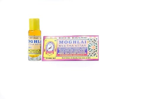 Deer Brand Moghlai Meetha Attar use in veg & nonveg Biryani Kuska Khsuka Pulao Polao Mutton Chicken Qurma Korma QaliaQualia kababs also for sweet dishes Deer Brand Moghlai Biryani Attar use in veg & nonveg Biryani Kuska Khsuka Pulao Polao Mutton Chicken Qurma Korma QaliaQualia kababs also for sweet dishes Meetha (Mitha) Attar works as Flavoring agent or essence for rice related dishes. A drop of Mitha Attar is must in Mughlai dishes. Pure Mughlai Biryani Flavour Edible grade. A drop of Mitha Attar is must in Mughlai dishes. Pure Mughlai Biryani Flavour Edible grade. Its most popular use is as a flavoring agent. DEER BRAND Royal Mughlai Meetha (Mitha) Attar for Biryani cooking Rice Dishes Moghlai Dishes is incomplete without a Drop of Meetha Attar