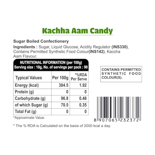 Candy is a sugar boiled hard candy which offers a unique tangy taste and is truly mouth-watering. It has a fresh and delightful taste. It is the perfect on-the-go chew Candy to keep accessible in your bag or can be kept in a Candy dish to offer visitors and children.