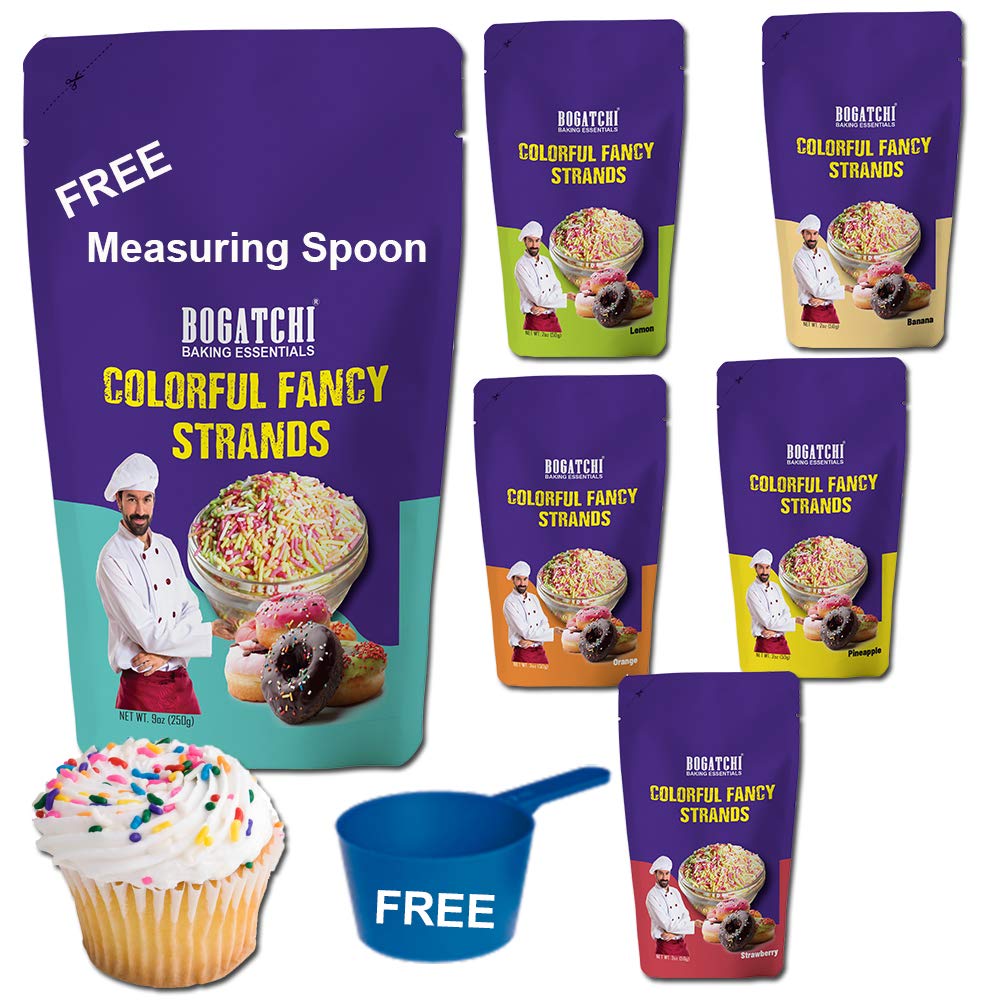 BOGATCHI Colorful Sprinkles for Baking and Decoration 5 Colorful Strands Colorful Vermicelli Sprinkles Vegan and Gluten Free 5 Colors Separately Packed 250g with Free Measuring Spoon